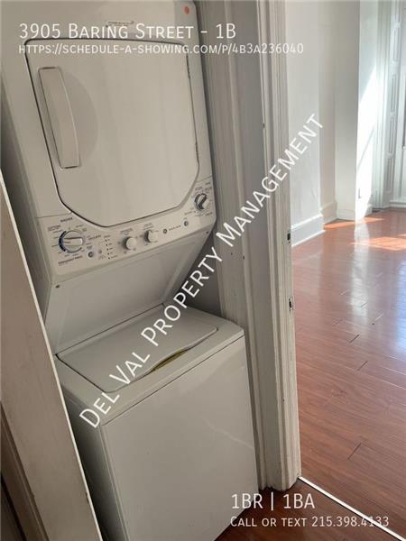 We've Reduced the Rent! Charming 1-Bedroom Apartment for Rent in Powelton Village $965/month plus $50 per month flat fee for water 1 Bedroom 1 Bathroom Street Parking Modest living room Small efficiency kitchen Full Bathroom with stall shower Spacious Bedroom with plenty of natural light Both the Living and Bedroom come equipped with a remote operated Mini-Split AC Unit Stacked washer and dryer in unit Walking distance to Drexel University, Penn Presbyterian Medical Center, public transportation, shopping, restaurants, bars and entertainment