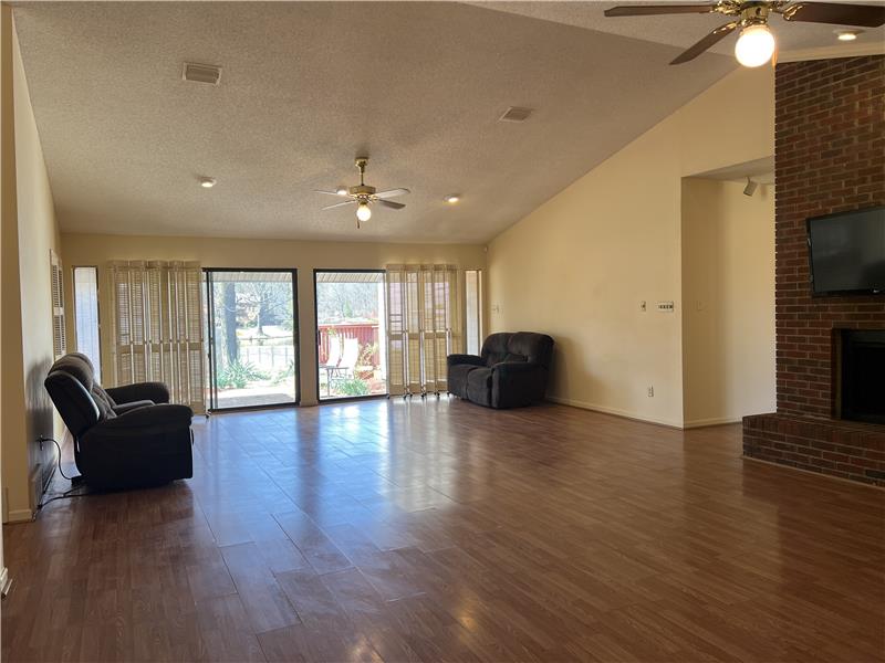 Escape to Peace and Tranquility on this Stunning Lakefront Property, where an Open Floor Plan seamlessly blends Indoor and Outdoor living. Imagine walking out to a Breath-Taking Lakeview, while sipping on a warm coffee; or just simply Relaxing on a Natural Canvas on almost an Acre of land. This Spacious home has 5 Bedrooms/ 3 Full Baths plus 1 Special Bonus Room with a Commercial sink. This home is designed for Relaxation and Entertaining, with a nicely remodeled Kitchen, Granite Counter Tops, Ample Counter Space, Stainless Steel Appliances, Beautiful Cabinetry, cozy Fireplace in the Great Roo
