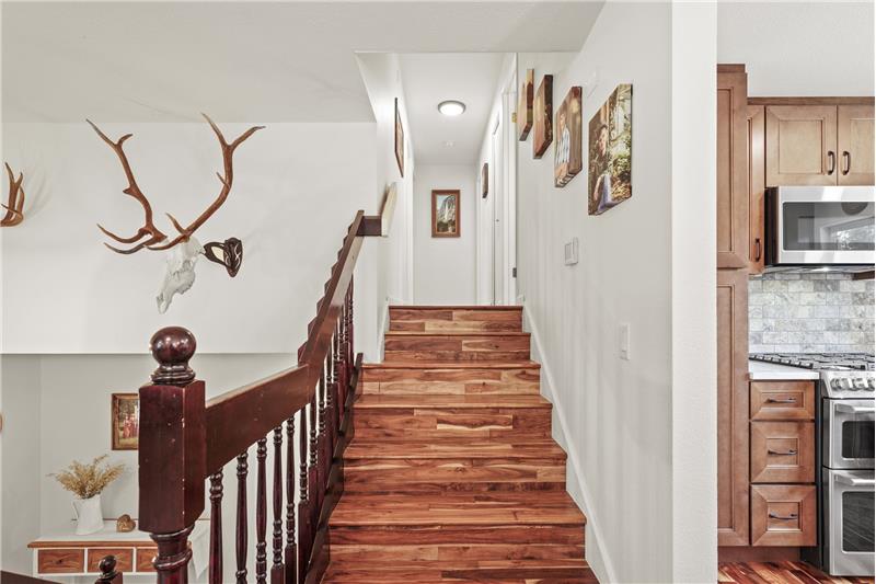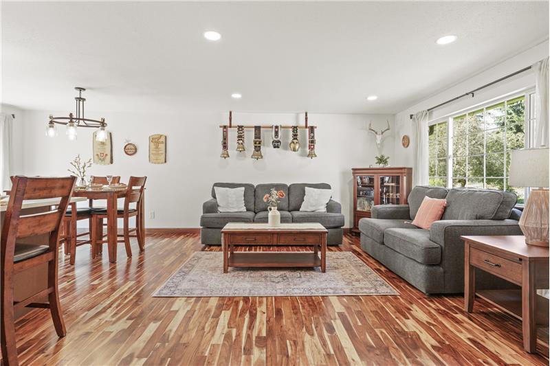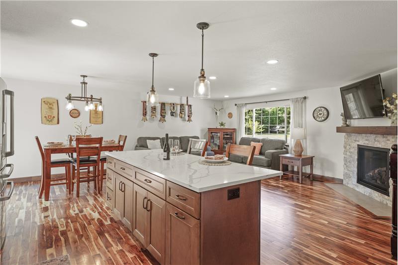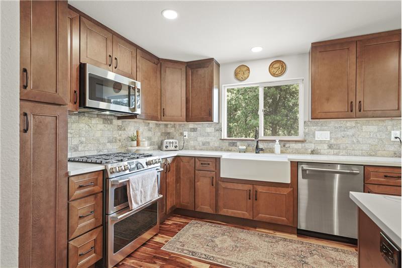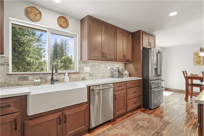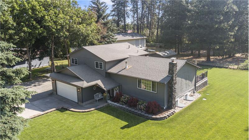 Tucked away in Spokane Valley’s sought-after Ponderosa neighborhood, this updated 5 bed, 3 bath home marries charming character with modern ease. Sun-splashed picture windows and acacia hardwoods sweep through an open main level anchored by a stacked-stone gas fireplace. The kitchen shines with an oversized quartz island, double oven, newer cabinetry and farmhouse sink. The gas appliances come with a 2 year transferrable warranty too! Three bedrooms up and two down provide flexible space for guests, office, or gym, served by tastefully updated baths.