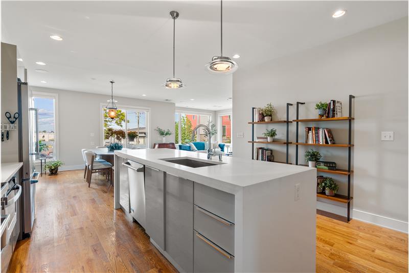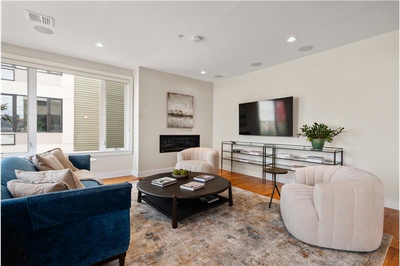 This well-designed condominium offers nearly 1700 square feet of living space with 2+ bedrooms and two full bathrooms and 2 private outdoor spaces. The open floor plan creates a seamless flow between the living room, dining area, kitchen, and private balcony, providing ample space for entertaining. The primary bedroom features a spacious layout with a private en-suite bathroom, while the additional two bedrooms share a convenient full bathroom. The gourmet kitchen is equipped with stainless steel appliances, ample counter space, and custom cabinetry, making meal preparation a delight.