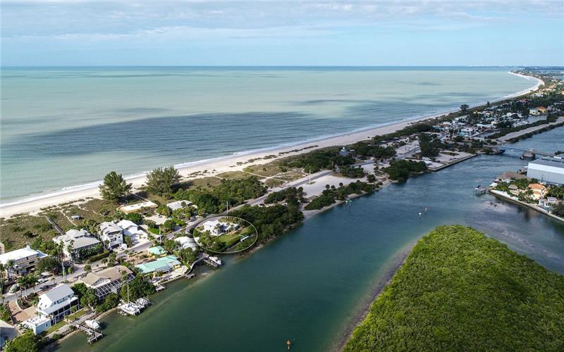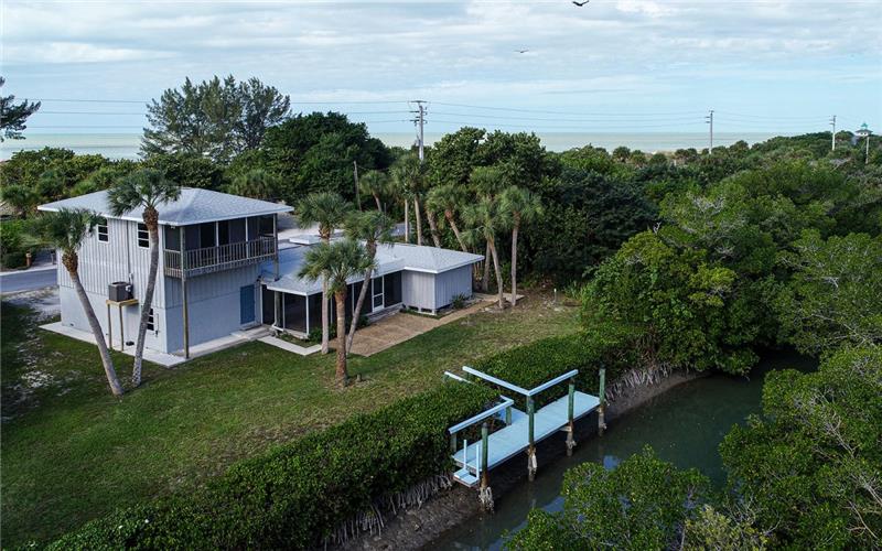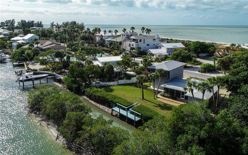 Casey Key Bayfront Cottage with Old Florida Charm and beautiful Pecky Cypress wood interior. The main home was built in 1947 and the Master Bedroom / garage building addition was built in the 90's. No Bridges to the Gulf from your private protected boat dock, off which is great fishing, and only a short distance to the Jetty’s and out to the Gulf of Mexico. Your private Beach Easement is right across the street to some of the Nicest & Deepest Sandy Beach on Casey Key. Two Bedroom two Baths with large 15 x 24 Living room which opens to the back 24 x 12 Covered Screened Porch overlooking dock...