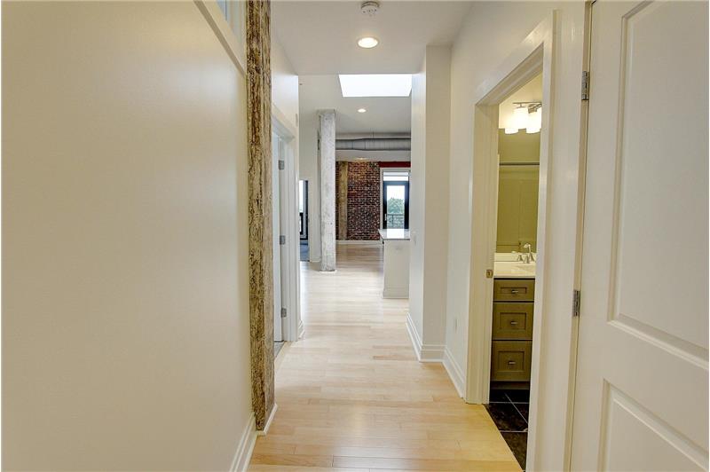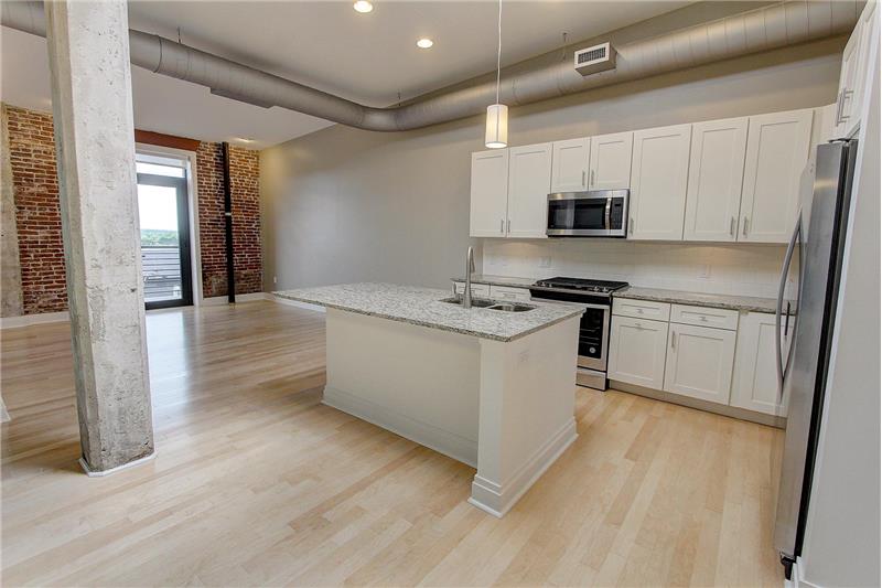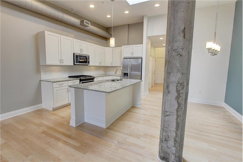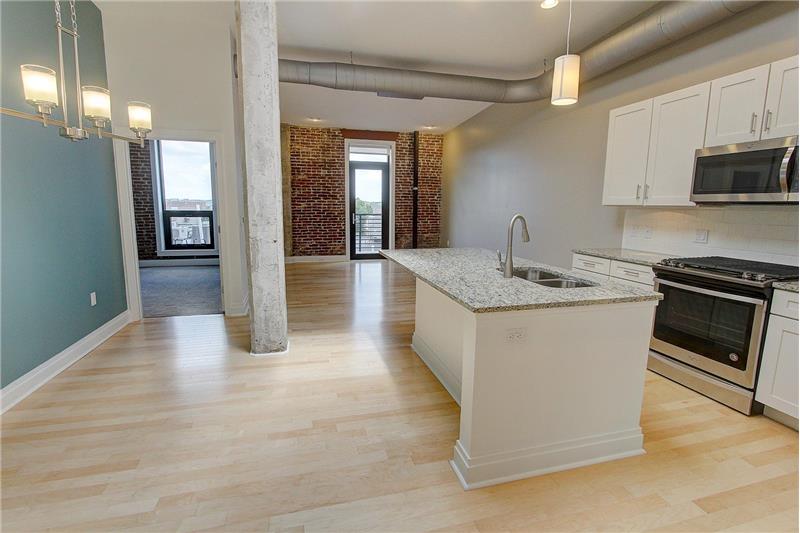 Imagine stepping outside the historic Lancaster Press building and enjoying all Lancaster City has to offer! This beautiful 6th floor 2 Bedroom & 2 full bath unit has northern exposure with a great view north and northwest, and is fully finished and ready for immediate occupancy. Open floor plan with 1,174 sf of living space... exposed brick walls, concrete columns, and balcony. 2 skylights! Fabulous open kitchen with granite countertops & tile backsplash, hardwood flooring, stainless steel appliances with gas range, granite bathroom vanity tops, ceramic tile flooring & ceramic tile shower.