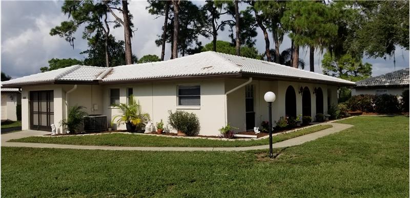This charming condo has been updated! Amazing engineered hardwood flooring through out and tile in baths and kitchen. Indoor laundry, air conditioned garage, New updated bathrooms, Custom tile kitchen back splash. Stainless appliances, disposal, dishwasher, stove and refrigerator. Split bedroom plan, covered screened front porch and a water view! One car garage with a screen enclosure. This home is decorated in cool soft colors that will go with any decor. Make this your new tropical getaway from the cold! Pets allowed and no age restrictions too! Armor screen brand hurricane protection! Easy