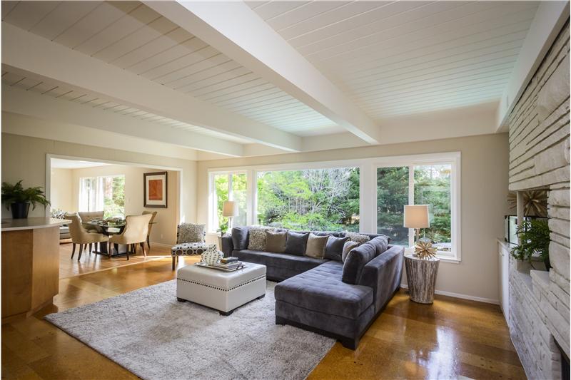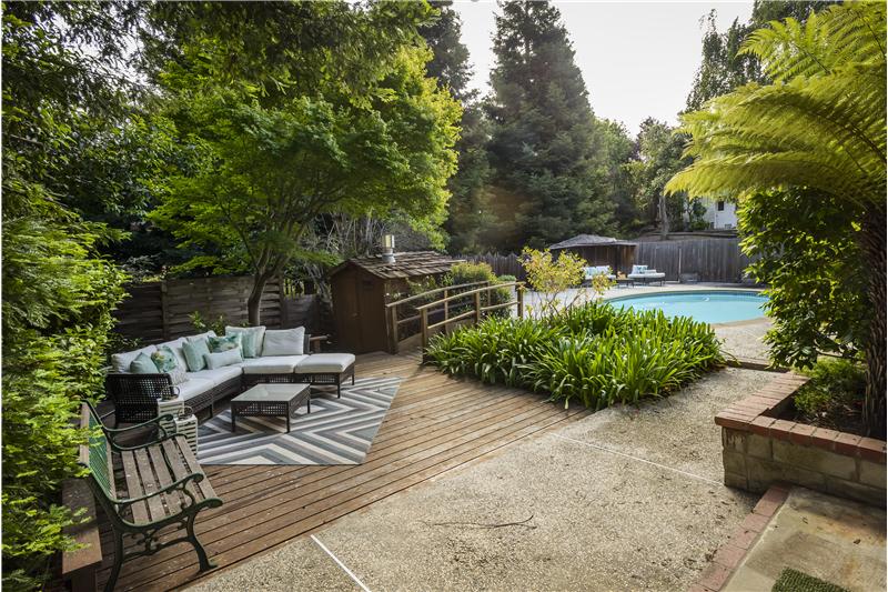 Uniquely designed for entertaining and privacy-this charming 3 bedroom/2bath ranch style home situated in the highly-sought-after hills of San Mateo offers the best of Peninsula living. Chefs will delight in the wonderful, spacious eat-in kitchen complemented by an abundance of counter space, dual ovens and a skylight. Whether used for entertaining or relaxing the expansive family room with its open beamed ceiling, custom cabinetry, wood burning fireplace and beautiful picture windows offers pleasing garden and pool views. Entertaining is a joy, featuring both indoor and outdoor living options