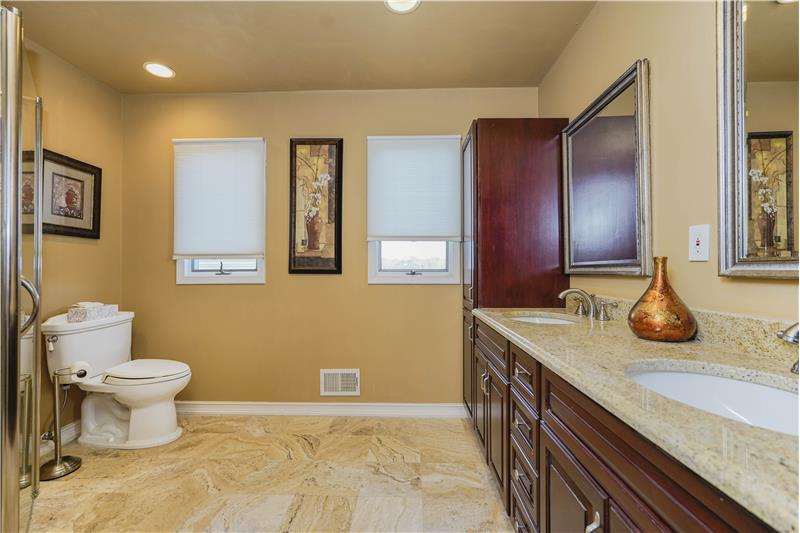 As you enter the spacious entry way, to the right you will step inside to the large living room and beautiful, cozy family room with wood-burning fireplace and gleaming hardwood floors! The kitchen has beautiful glass backsplash and updated granite. There is a laundry room, updated powder room, and a 5th bedroom. Fully finished basement with extra living space, entertainment and plenty of storage. Four bedrooms upstairs. Primary bedroom boasts a large 8 X 8 closet, en suite bath with double sinks. Two car garage, beautiful deck and inground pool. Please call Red Door Realty at #718-987.3667.