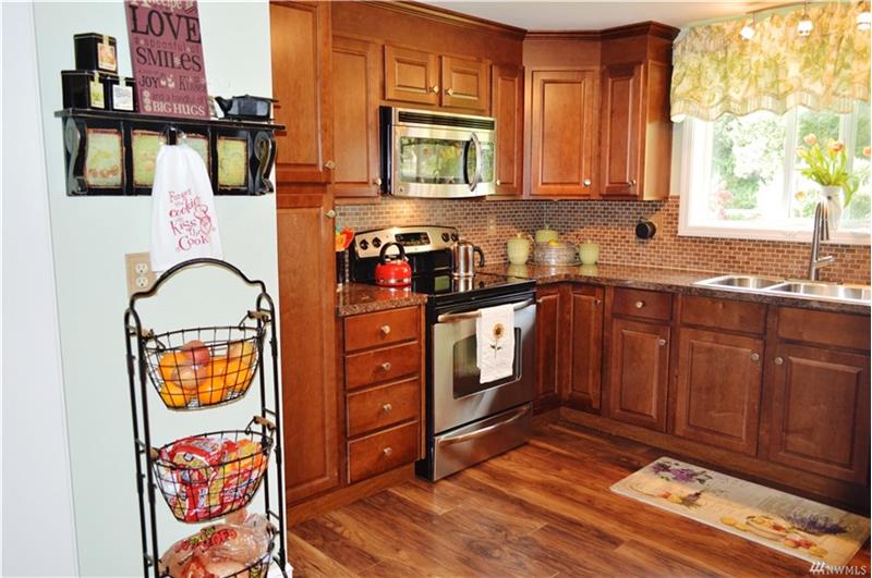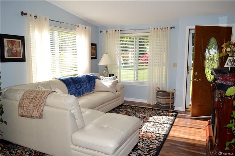 One Level living in this beautiful custom modular home. A wood stove comforts an enormous family room. Open floor plan that flows from one room to the next. Craft room for projects. All major appliances stay - this well maintained home is ready to go, just move in & enjoy. Outside you'll find beautifully landscaped grounds/gardens, 2 decks, fenced back yard, hot tub & a shop w/a finished studio that could be made into a MIL suite. Very near shopping and downtown Blaine but feels like country.