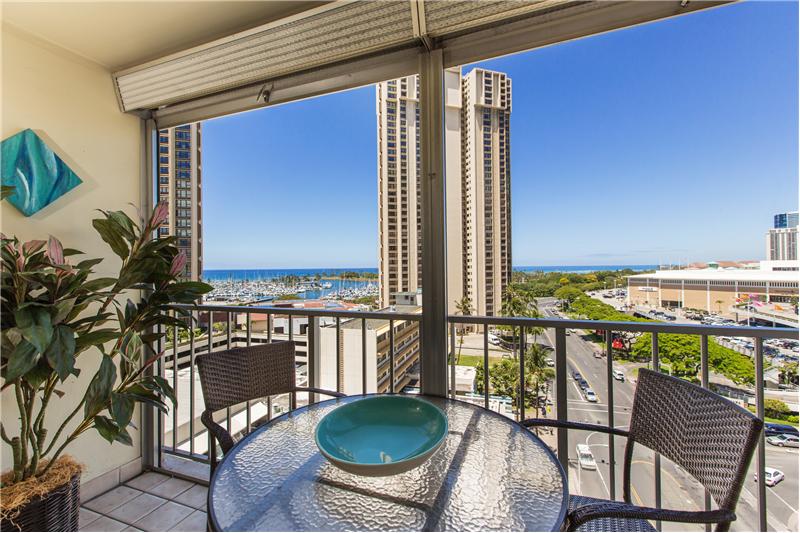 SOLD $465,000 Fee Simple2BA/2BA/1PKG419 Atkinson Dr # 1107, Honolulu, HI 96814This exquisitely remodeled giant 2/2/1 w/respectable views of city, ocean, and coast line. Renovated 09 top to bottom w high end materials to include new kitchen/bath/Walnut hardwood flooring..
