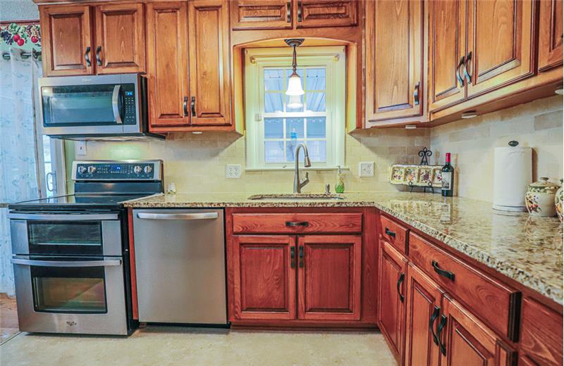 Beautiful low maintenance home in south Independence MO! This home has some extra bells and whistles like a brand new kitchen including custom cabinets, granite counters, deep sink, backsplash and all new stainless appliances! Wood floors throughout most of the home. $20,000 enclosed porch. Newly poured patio and additional parking lane! new $3,000 storage shed plus second storage shed for lawn equipment. Basement currently used as 4th non conforming bedroom with Full bathroom. Vinyl siding. Emergency heat system! Don't miss your opportunity!