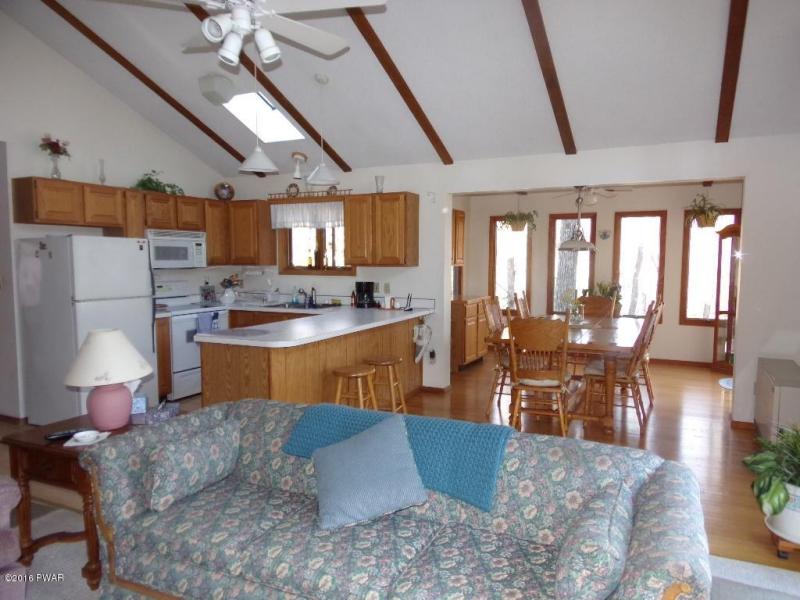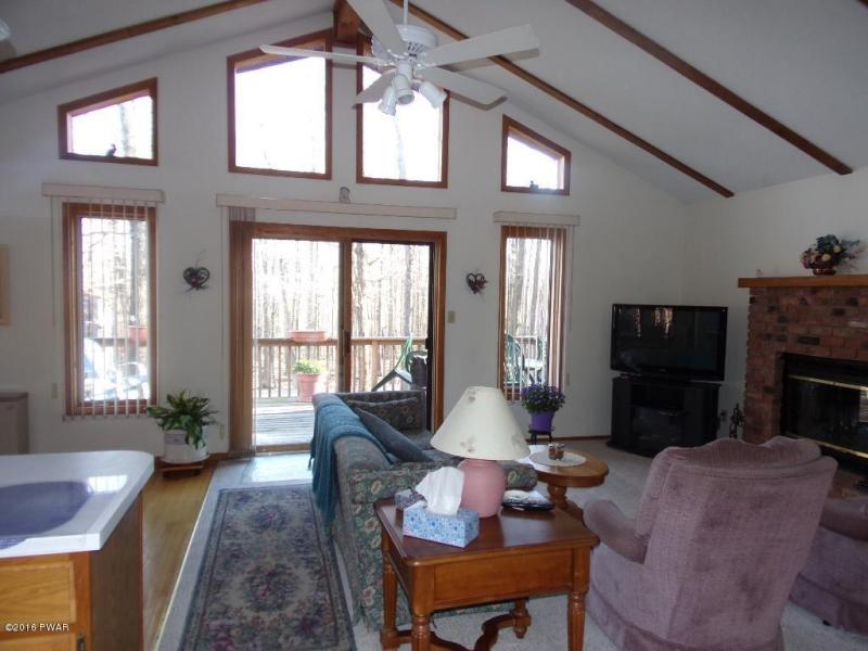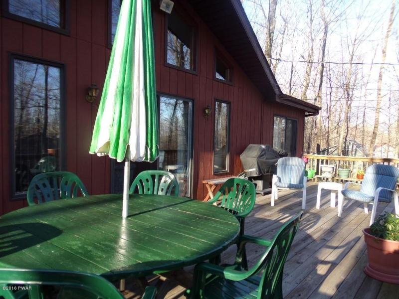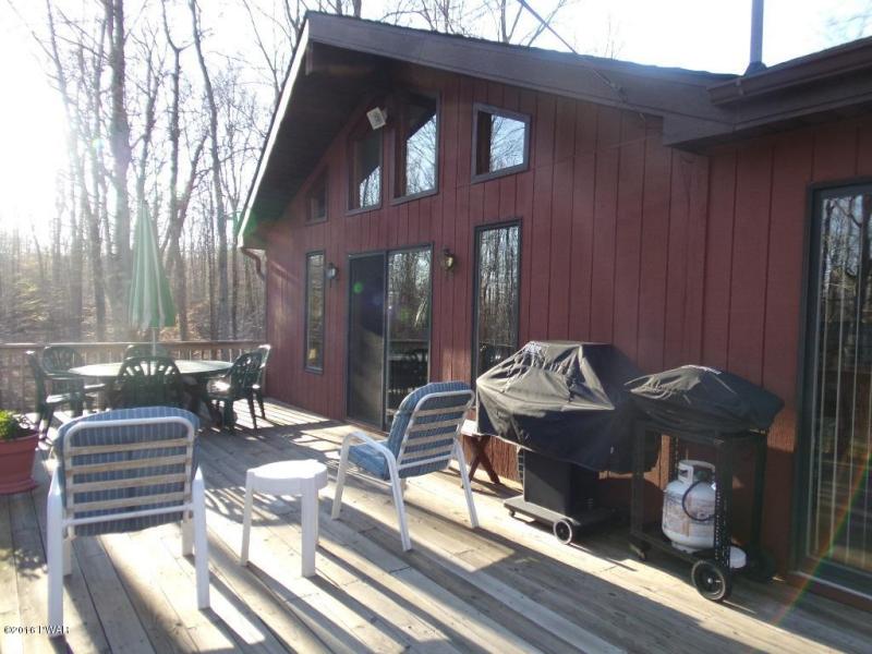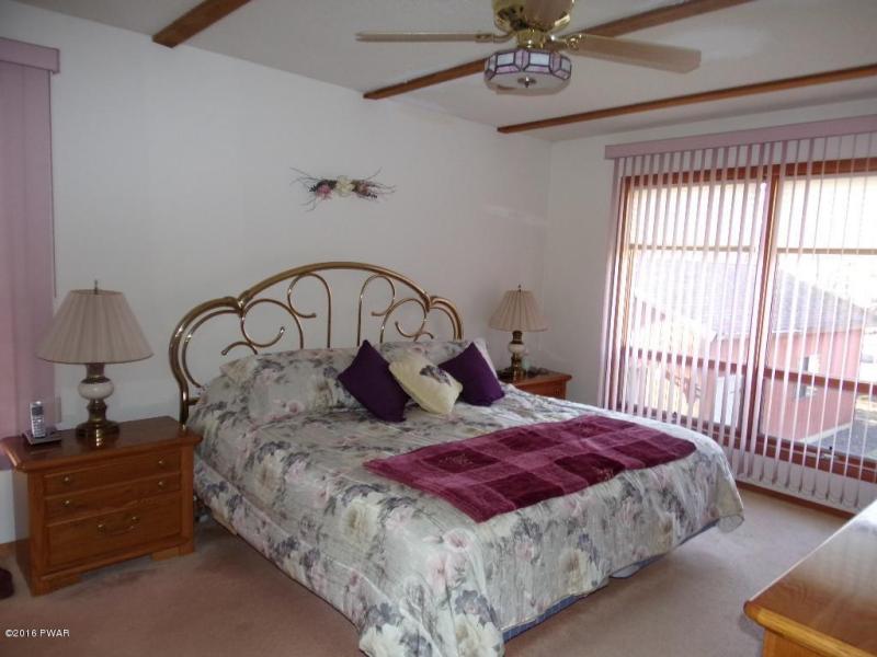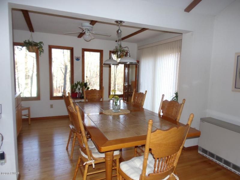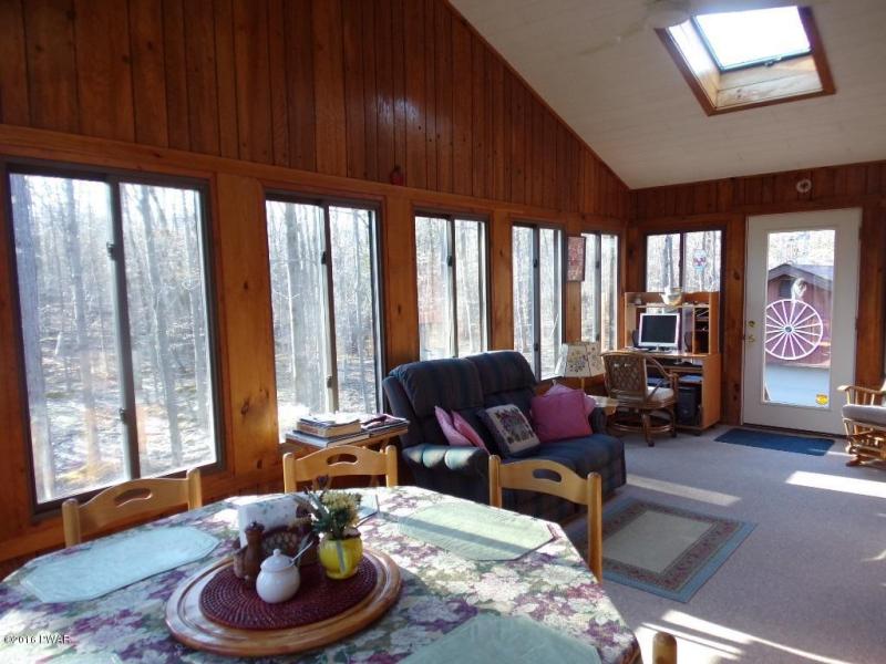 Solitude found in The Hideout. On one of the quieter streets and 28 acres of green area as the backdrop is 4BR, 2BA, raised rancher w/super sized all season sun room (23 x 12) and extended dining area. Hardwood floors, economic ceramic storage heating, family room, fireplace and paved circular drive make it extra special. Southern Exposure designed for great outdoor gatherings on sun deck and afternoons at the bocce court.In tip top shape and ready for immediate use, furnishings are negotiable
