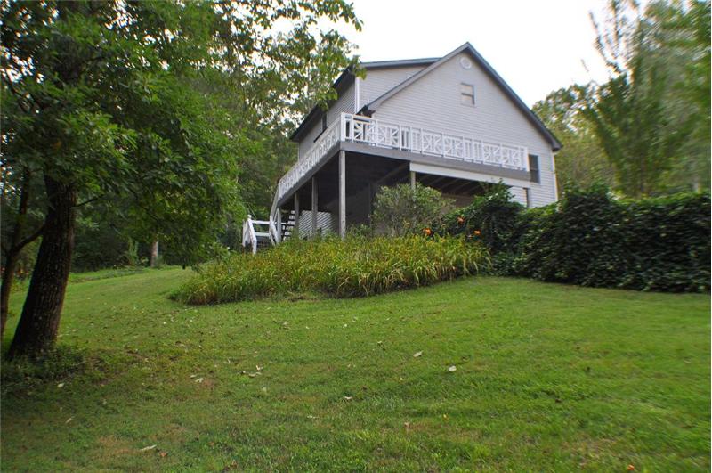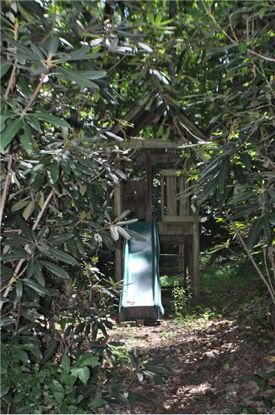 Double lot bordering creek. Beautiful Australian Cypress hardwood floors, stone fireplace, master on main level, family room in basement, plenty of storage room, large workshop space, eat-in kitchen, formal dining room, two-car garage on main level, extra one-car garage in basement. $37 per month HOA dues includes city water. Convenient to I26 and Asheville.