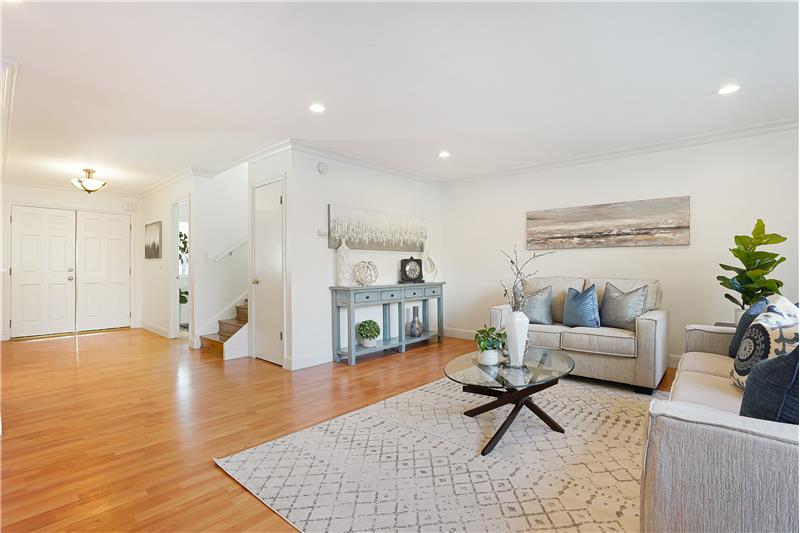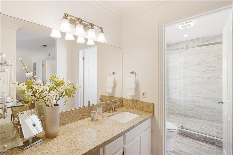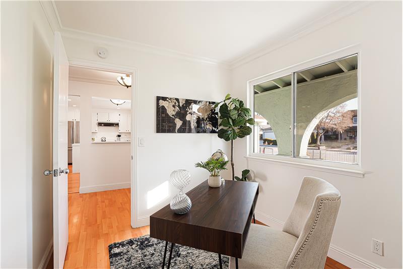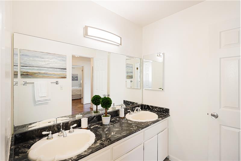 This delightful and spacious home has the space and flexibility to meet many diverse desires. A breakfast area is next to the kitchen and is separated from the dining and living rooms by half-high walls. Whether you are in the kitchen or the living room, you will not be cut-off from others. The family room is also adjacent to the kitchen but it offers privacy from the formal entertaining area and a cheerful fireplace. A small office near the front door enables you to take care of any business meetings without traveling through your home. Upstairs, all 5 bedrooms are good sized. The three sm