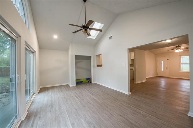 This wonderful home has been completely renovated and is ready for you! New floors and fresh paint stun throughout the home and the kitchen has been upgraded with gorgeous Corian counters. The main living area boasts a soaring vaulted ceiling that allows ample natural light to flow throughout and a lovely fireplace perfect for chilly evenings. There's even an additional family room/flex space that provides plenty of space to move and grow. Just when you think that it can't get any better, step outside to find the most perfect fenced back yard ready for new memories!