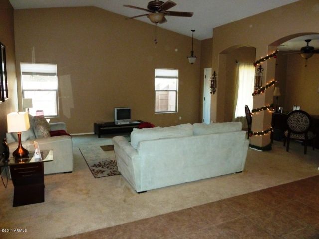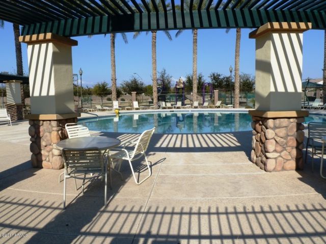 Single level 3 bedroom plus den, two bath. all tile floors. Master Split. Great room plan. Kitchen has island and all appliances included. Inside laundry with Washer-dryer. Generous easy care back yard. Community Pool, parks and walk paths. All on one level. Gas heat and hot water. Available June 30th