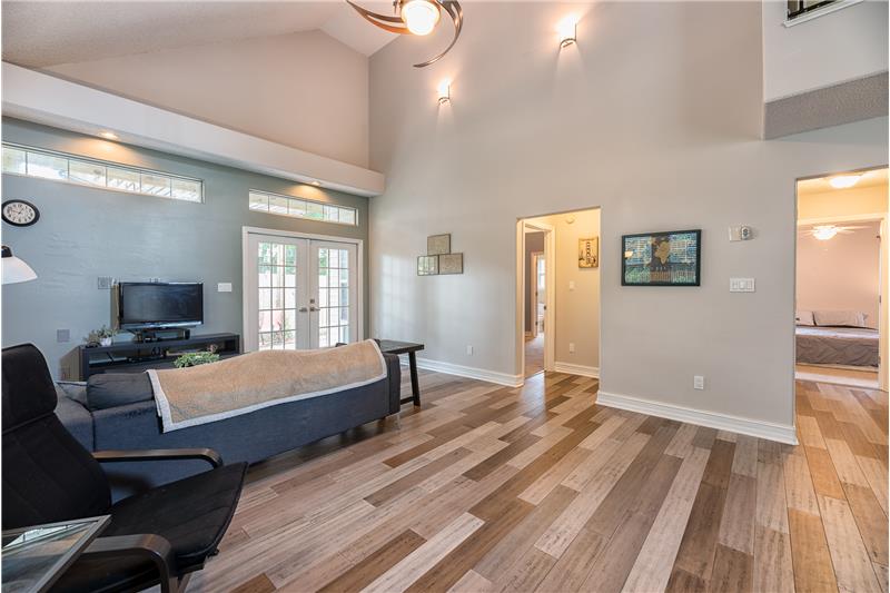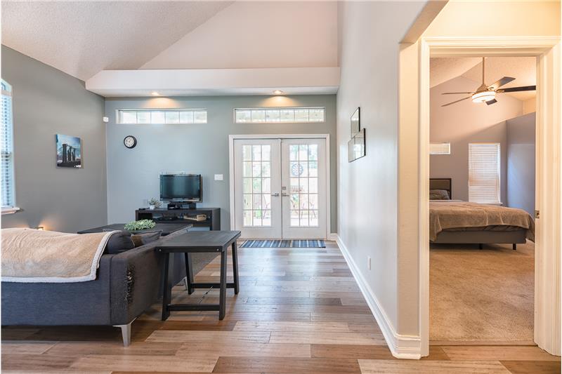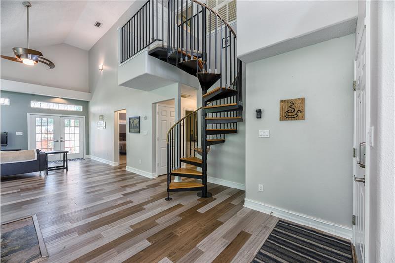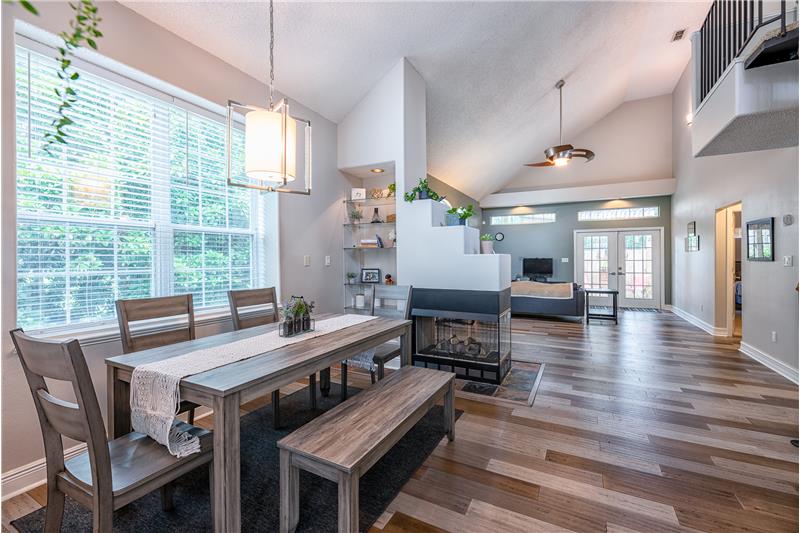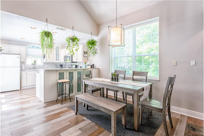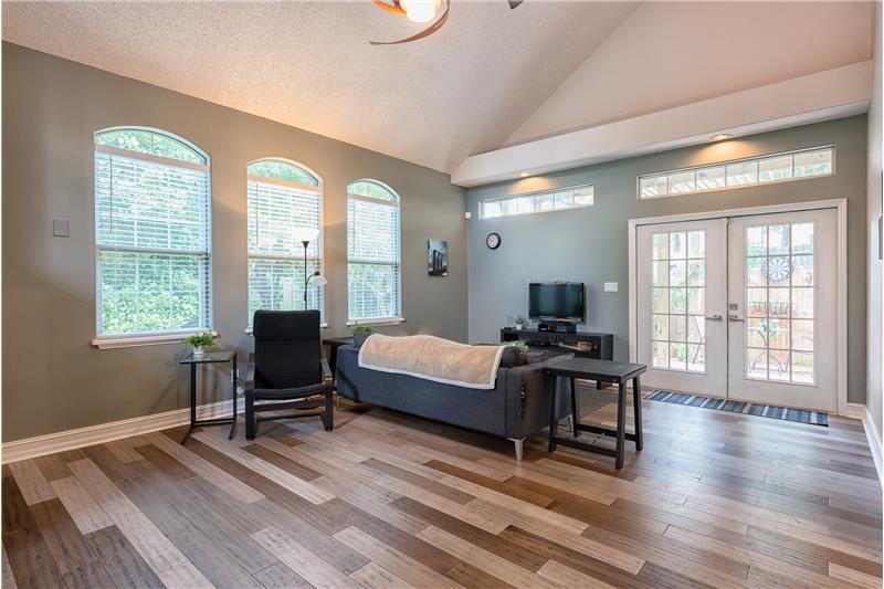 MOVE IN READY in the wonderful neighborhood of Kinsail! This property has so much curb appeal and charm while boasting gorgeous updates throughout. Located in a cul-de-sac and backing up to green space, this three bedroom, three bathroom home lives open and bright with its flowing floorplan featuring elevated ceilings, beautiful bamboo floors running throughout the downstairs living spaces, a renovated kitchen in 2017, updated countertops in both downstairs bathrooms, the potential for a second, private master suite upstairs, and the private back patio overlooks the quaint fenced in yard with