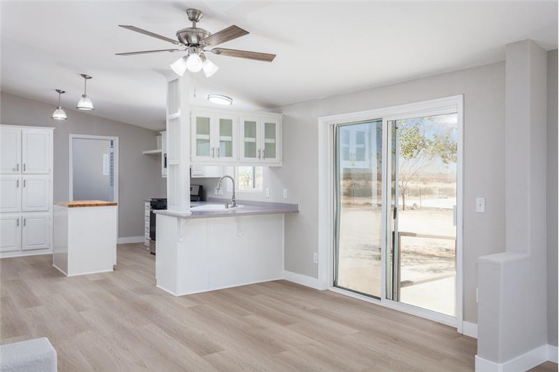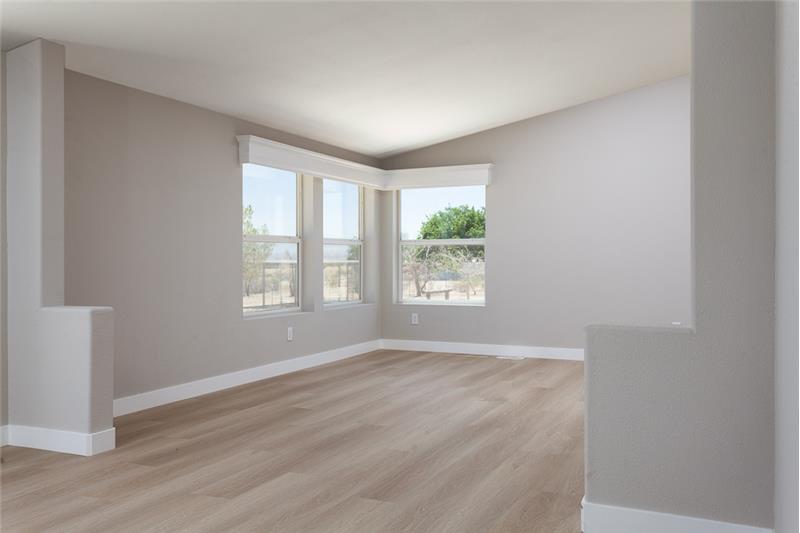 Updated 3-bed, 2-bath home on 2.27 acres in the High Desert east of Lancaster. Built in 2005 with new flooring, fresh paint, and a bright kitchen with stainless appliances and butcher-block island. Spacious layout with a living room, second living room, dining area, and private primary suite. Detached 2-car garage/workshop and large slab for RV parking, recreation, or a sports court. Room for animals, desert toys, and more—set against sweeping mountain views.