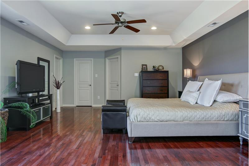 Sophisticated & Elegant, this popular Cedarbrook model will WOW you! With over $100K in upgrades, and 6 years young, this home is not to be missed! The brightness and views from the large windows throughout the house is spectacular. The upgraded Chef's Kitchen with dual wall ovens, direct venting & large center island with seating has views of the garden architecture trees, shrubs & water feature in the back yard that are breathtaking. The main level is comprised of vaulted ceilings in the DR and FR creating a mood of elegance. A second iron balister staircase can be accessed from the ...