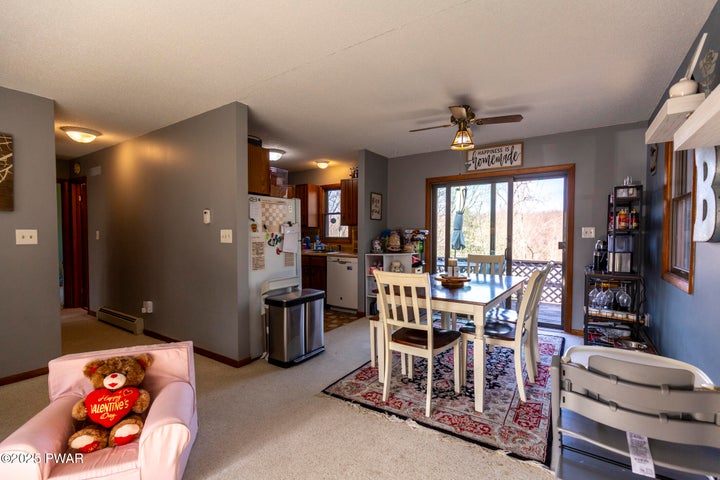Discover this affordable gem on the golf course in The Hideout! Conveniently located just a short walk from the clubhouse, dining, pub, and indoor recreation center, this home offers a spacious open floor plan with a large family room on the lower level—perfect for gatherings. Recent updates include a newly renovated second bathroom and a brand-new water heater. Need an extra bedroom? There's plenty of space to create a third! Step outside to a private back deck, ideal for barbecuing and enjoying the serene natural surroundings. Don’t miss out on this fantastic opportunity!