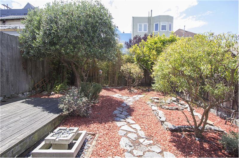 Right in the center of all the North Slope Potrero Hill action, this light filled circa 1885 top floor Victorian two bed condo has it all! Formal living room with bay window & peak-a-boo city view. Open kitchen/dining/family room with gas stove, stainless steel appliances and direct access to a sun drenched back deck and shared garden with fruit producing vines! Two Large bedrooms with Elfa closet storage systems. Master bedroom has walk-in closet. Hardwood floors throughout! A-frame attic space for storage and possible expansion. Laundry and additional storage in basement. Low HOA $200/month.