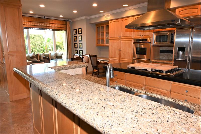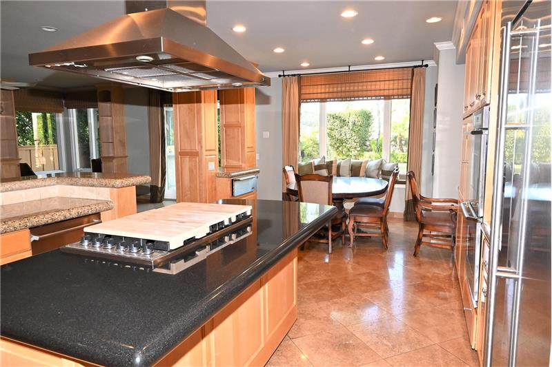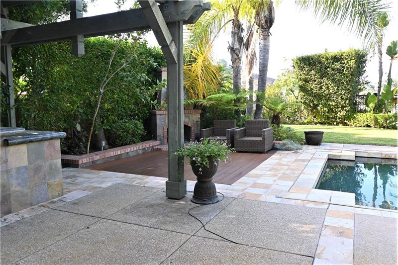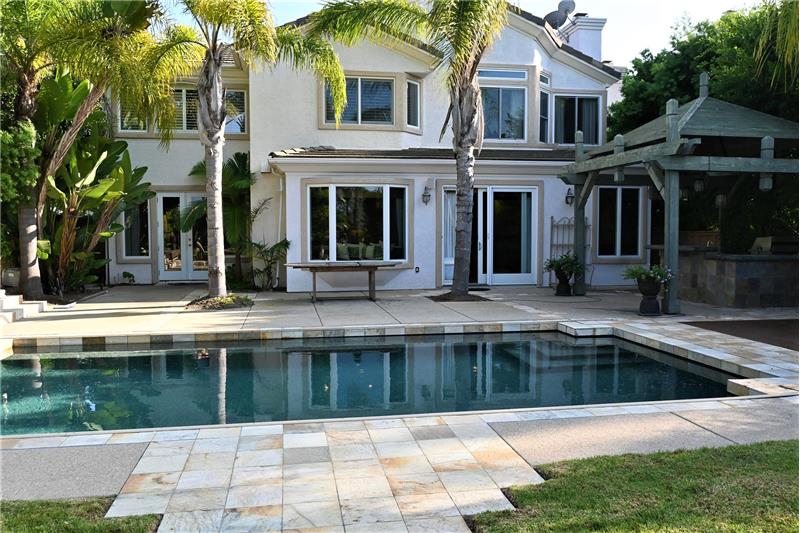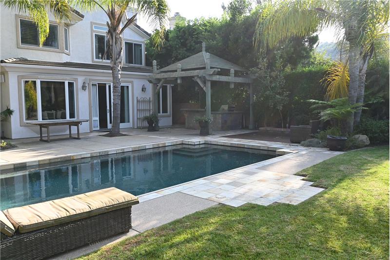 Privacy and views in this model perfect expanded home on a quiet cul-de-sac street. Six large bedrooms, 4.5 baths, plus a large den/office. Beautifully upgraded with no expense spared including a lush tropical backyard with pool, spa, outdoor kitchen, and fireplace with a stepdown seating area. A wonderful family home for comfortable expansive living and magnificent entertaining. The gourmet kitchen features top of the line appliances opening to the expanded family room. Quality stone finishes, travertine, slate, marble, and impressive coffered ceilings. Amazing home, too many upgrades!