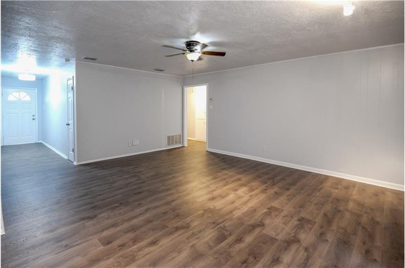 Nice 3 bedroom 2 bath house on a corner lot. Recently updated with wood look flooring, granite counters, and fresh paint. 3 spacious bedrooms, a large living area, and a large utility room with built cabinets and sink. The large fenced backyard is perfect for enjoying the outdoors. Storm shutters on all windows. Great value on this Southside home.