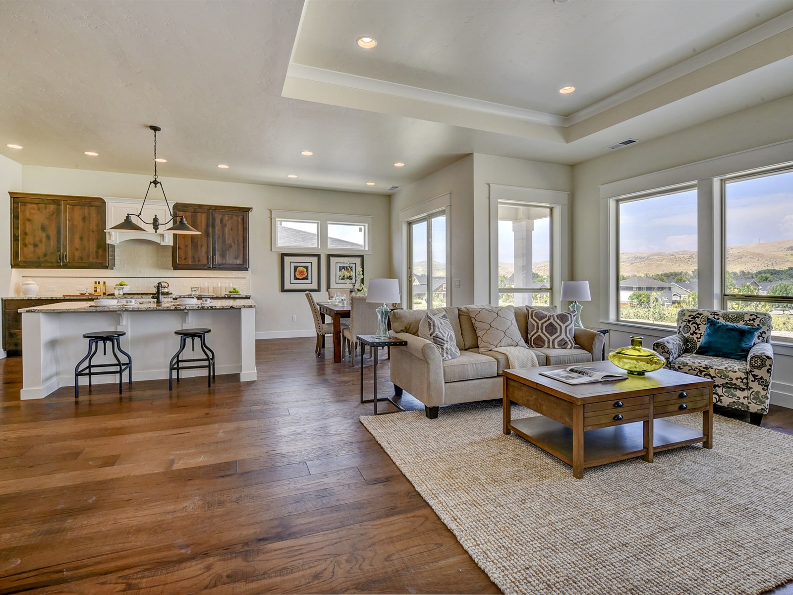 *photos similar* Welcome to a custom Pinehurst where you can downsize without the sacrifice! This single level plan was designed to showcase prized furniture and art! From the expansive entry to the spacious kitchen and great room, each room provides luxurious living comfort. The great room features hardwoods throughout, abundant windows and a cozy stone fireplace! The kitchen is anchored by a 7’ island, and is loaded with abundant cabinets, pull out drawers, a 4-piece Whirlpool appliance package, gorgeous granite and custom woodwork. The master suite pampers new owners with dual vanities, an oversized tiled shower, and a walk-in closet conveniently connected to the utility room! Boise Building Company trademark qualities shine throughout!
