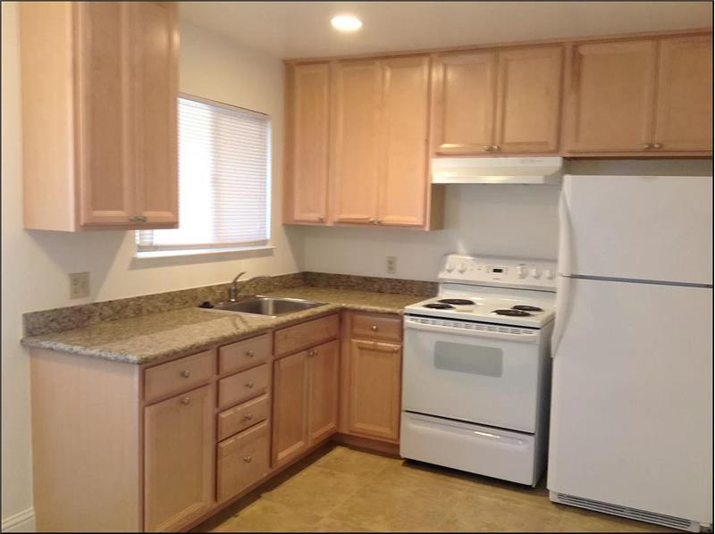 Two bedrooms * One full bath with newer shower over tub, granite vanity, and sink * Large eat-in kitchen offers newer maple cabinets, marble counters, tile floor, stainless steel sink and newer appliances * Common laundry room with coin operated washer/dryer * Two assigned carport spaces.