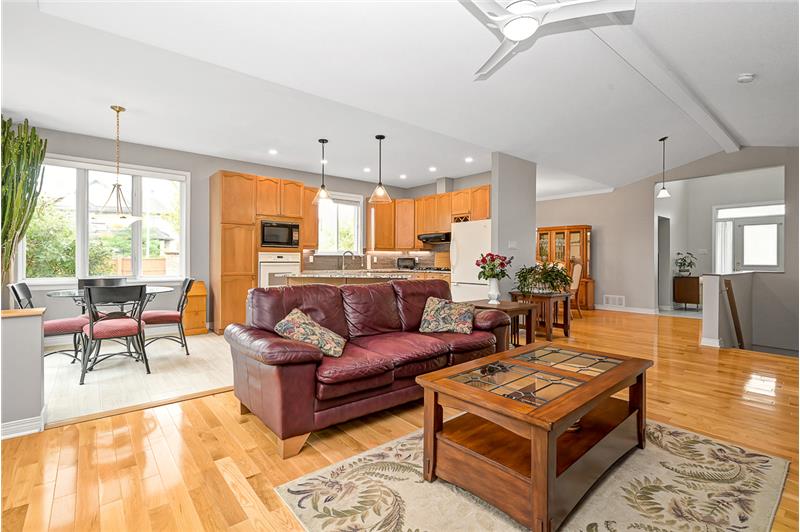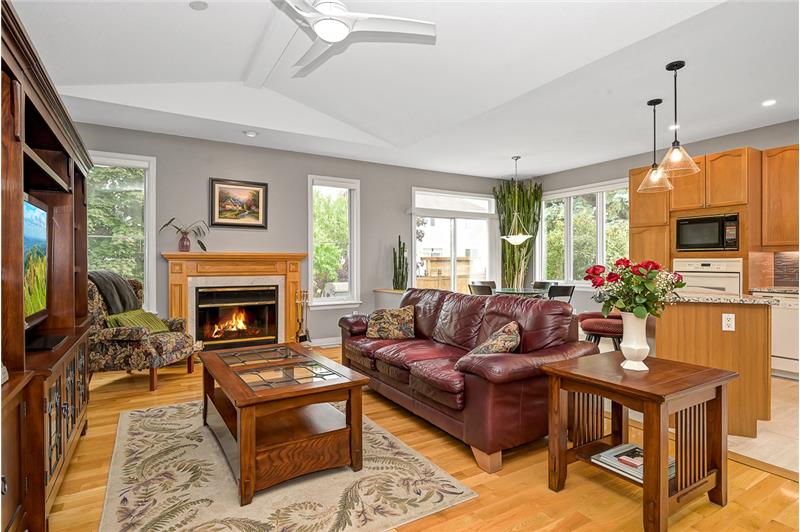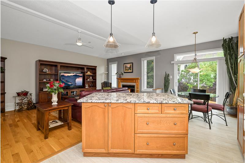 Charming 2-bed + den bungalow on a premium corner lot in Stittsville. Open layout, granite kitchen, wood fireplace, steps from nature trails. Ideal low-maintenance retreat for downsizers.