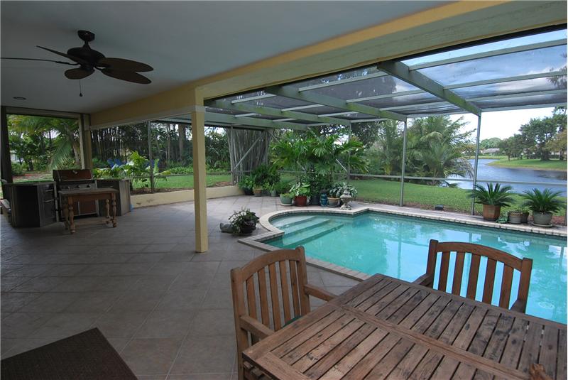 BUYER INCENTIVE!! PAID INITIATION FEE!! Delray Dunes Golf & Country Club, Boynton Beach, FL. One of the largest lake lots in the Dunes! Spacious pool home offers 4 bedrms, home office, 3.5 baths. Light pine floors, crown moldings, skylights, open flr plan, split bedrms, Media room, Formal dining rm, Great Rm, huge kitchen with granite counters, built-in breakfast nook and walk-thru pantry. Fantastic views! Entertaining size covered patio and screened pool. Walls of glass sliders create seamless indoor outdoor living spaces! Tropical landscaping, lrg.42 acre lake lot. Gorgeous Views!
