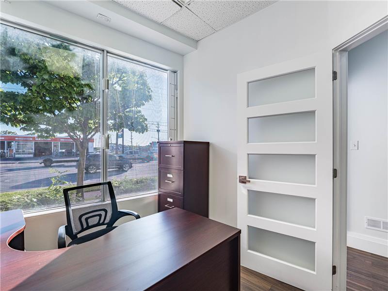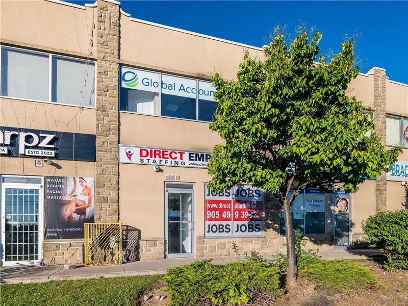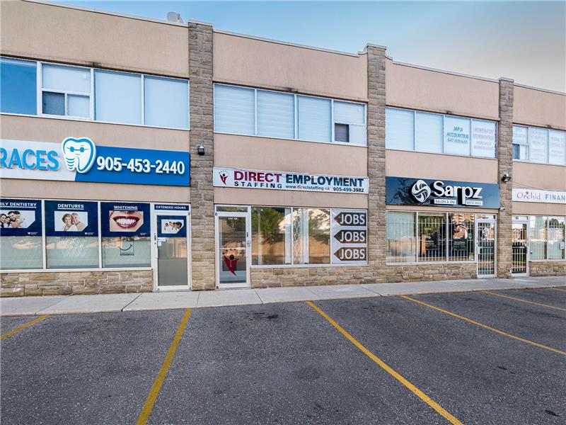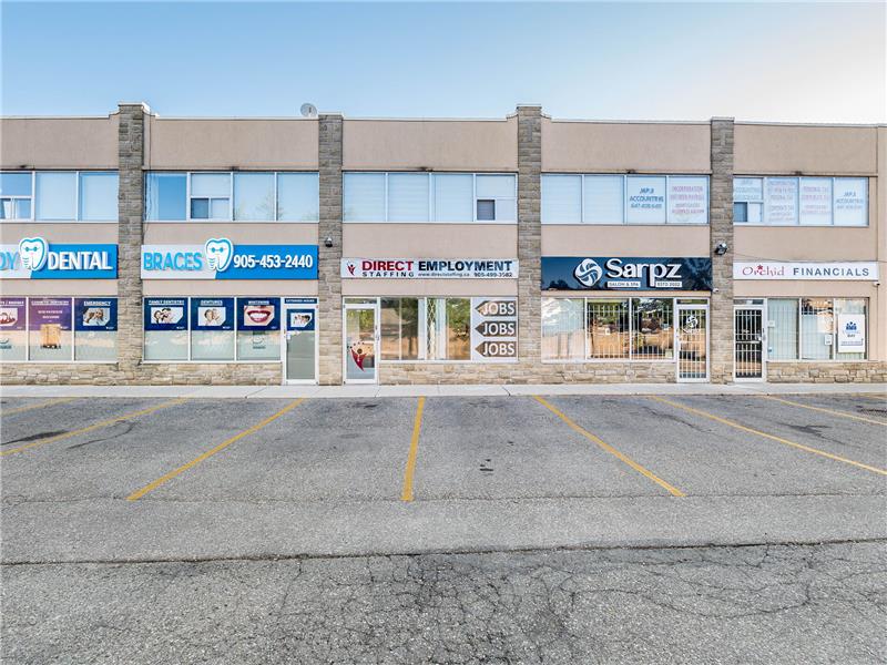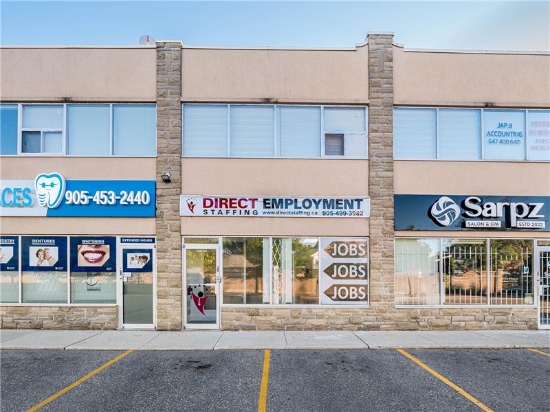 Outstanding opportunity at 49 Hillcrest Ave, Unit 104 in Brampton’s prime Queen & Kennedy corridor! This 1,920 sq. ft. commercial condo (950 sq. ft. ground + 970 sq. ft. basement) is fully finished with reception, private offices, meeting space & open area. Turnkey with professional finishes, bright client-facing design, ample parking & great visibility. Proven rental history of ~$6,500/month offers strong income potential. Ideal for real estate, mortgage, law, medical, tutoring, IT & more.
