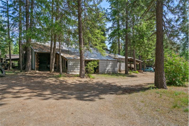 Welcome to your private retreat! This secluded 5-acre property at the end of the road features mature pine and fir trees. The 5-bedroom, 4-bathroom house with two kitchens can accommodate multi-generational living. While some updates are needed, the potential is immense. Enjoy the large, covered deck for relaxing or entertaining. It includes a 2,800 sq ft shop with a lean-to and wood-heated workshop area, ideal for hobbies or projects. The fenced garden and livestock animal areas support your homesteading dreams. Don't miss this unique opportunity—schedule your showing today!