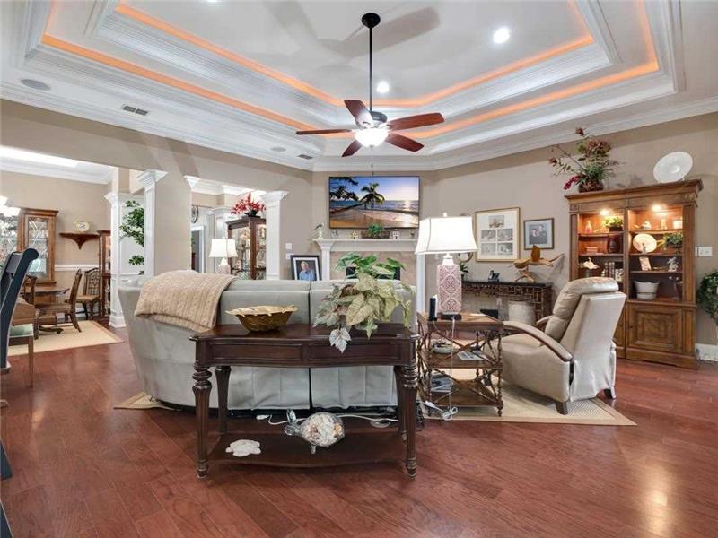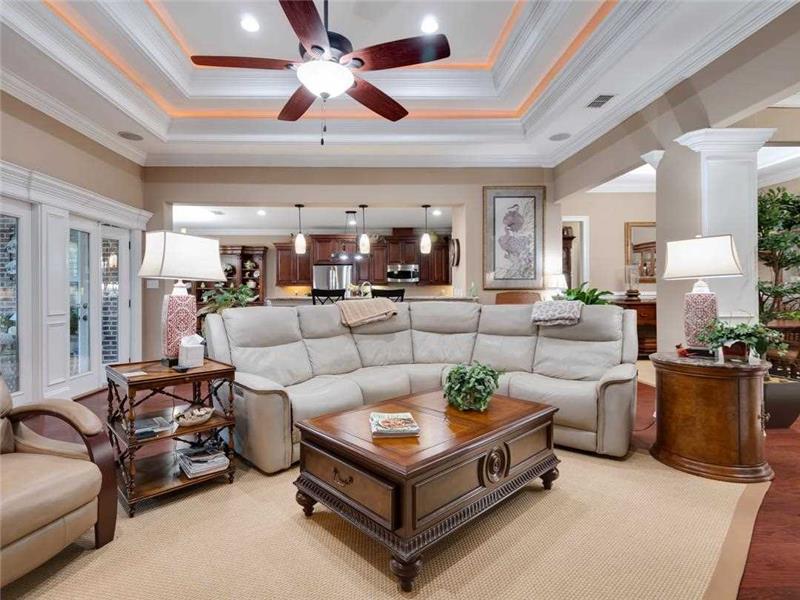 COMING SOON: Going live on Sat., Jan. 28. Assumable VA mortgage for 2.25% - Elegant upscale home with lovely architectural details throughout: decorative columns separate the living room and dining room with multiple levels of tray ceilings in living room, master bedroom and foyer. French doors across the back wall of living room open onto an enclosed screen porch with a view of the patio and flowers across the back yard. A new HVAC, whole house generator, solar array on roof and plantation shutters throughout were installed in 2022 and a full list of improvements is available. Large kitchen b