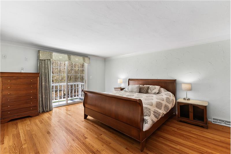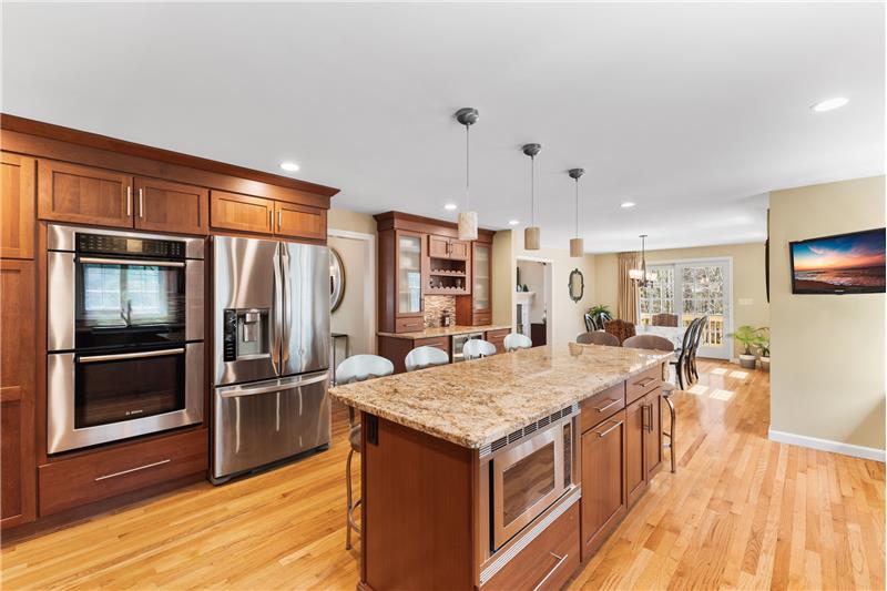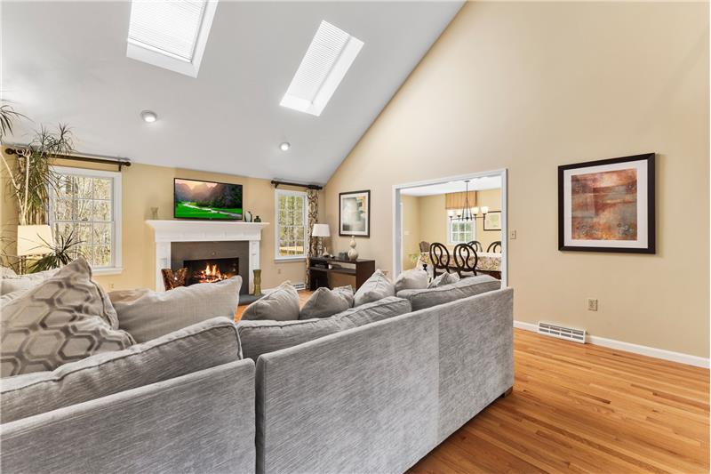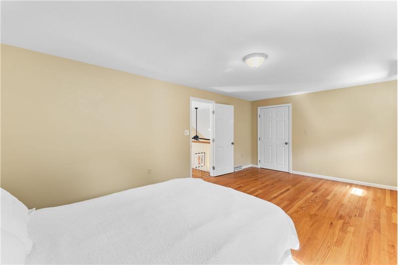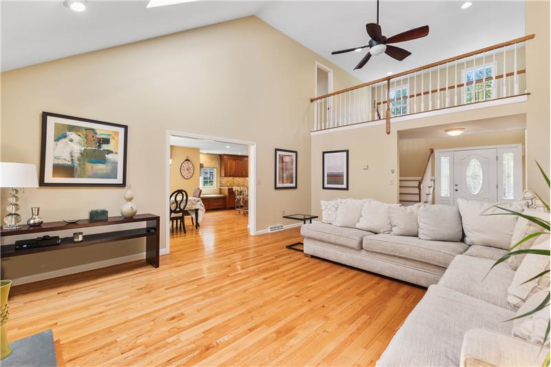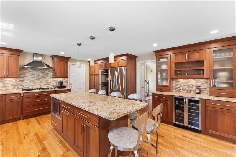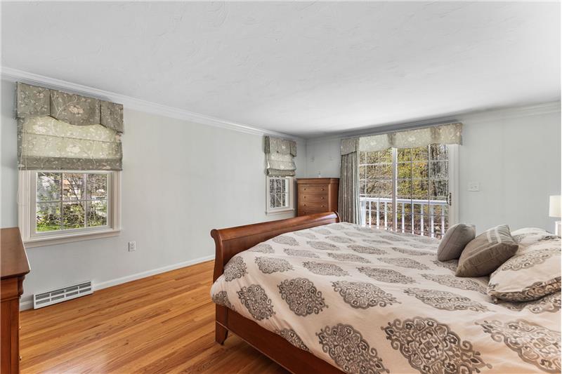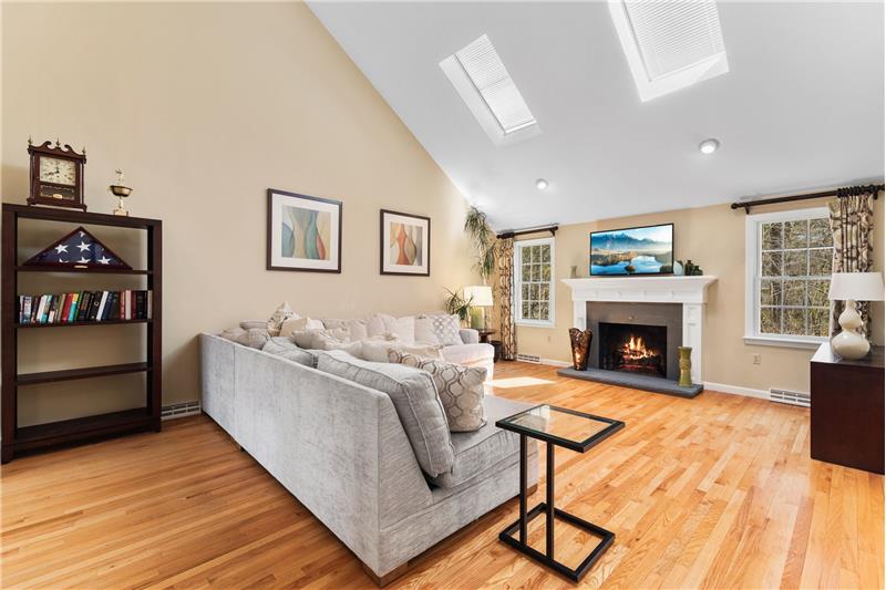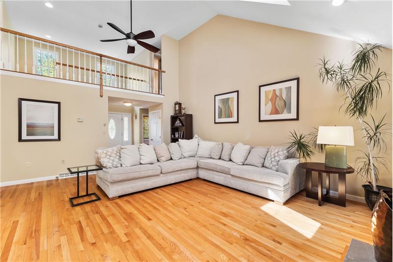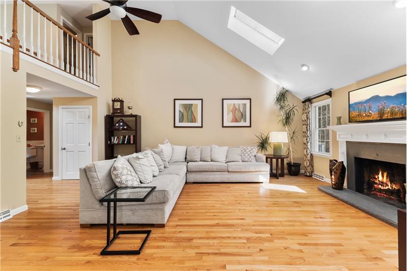 Step into this beautifully updated 3-bedroom home on a private lot with easy commuter access. The living room wows with a soaring cathedral ceiling & wood-burning fireplace. Entertain in the dream kitchen with a 6-seat island, granite counters, & stainless appliances—gas cooktop, double oven, in-island microwave, beverage fridge & more. The main-floor primary suite offers dual walk-ins, a tiled shower & a Juliet balcony with backyard views. Upstairs, find two spacious bedrooms with hardwood floors, oversized closets, & a full bath. The finished walk-out basement adds a media room & home office