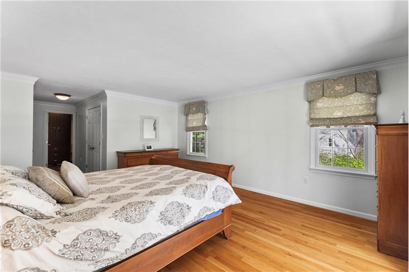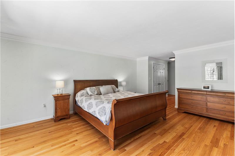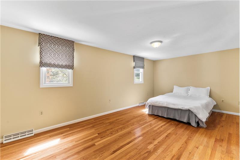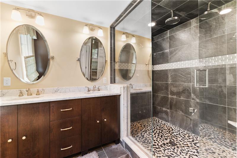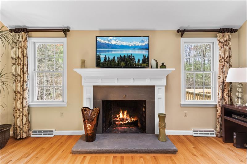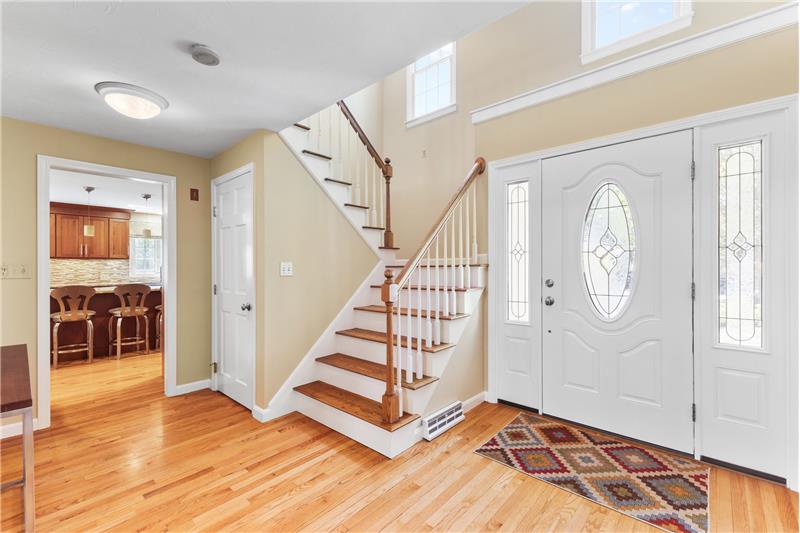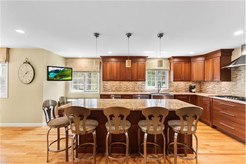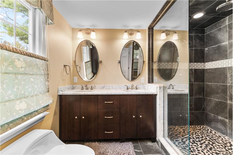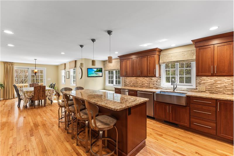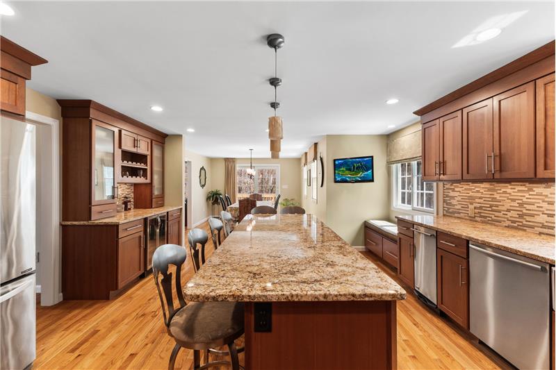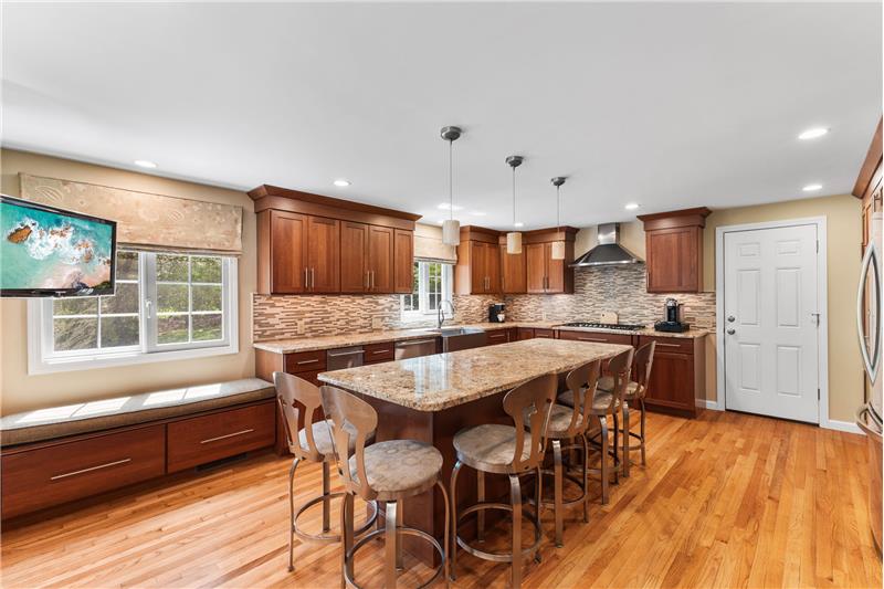 Step into this beautifully updated 3-bedroom home on a private lot with easy commuter access. The living room wows with a soaring cathedral ceiling & wood-burning fireplace. Entertain in the dream kitchen with a 6-seat island, granite counters, & stainless appliances—gas cooktop, double oven, in-island microwave, beverage fridge & more. The main-floor primary suite offers dual walk-ins, a tiled shower & a Juliet balcony with backyard views. Upstairs, find two spacious bedrooms with hardwood floors, oversized closets, & a full bath. The finished walk-out basement adds a media room & home office