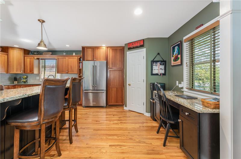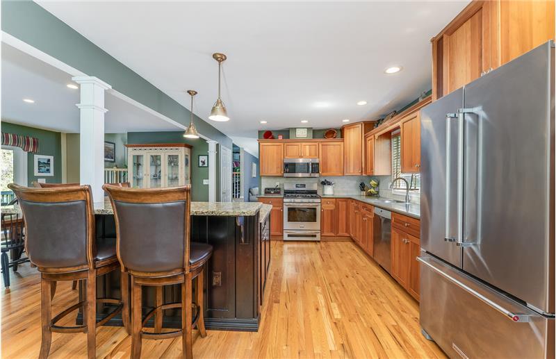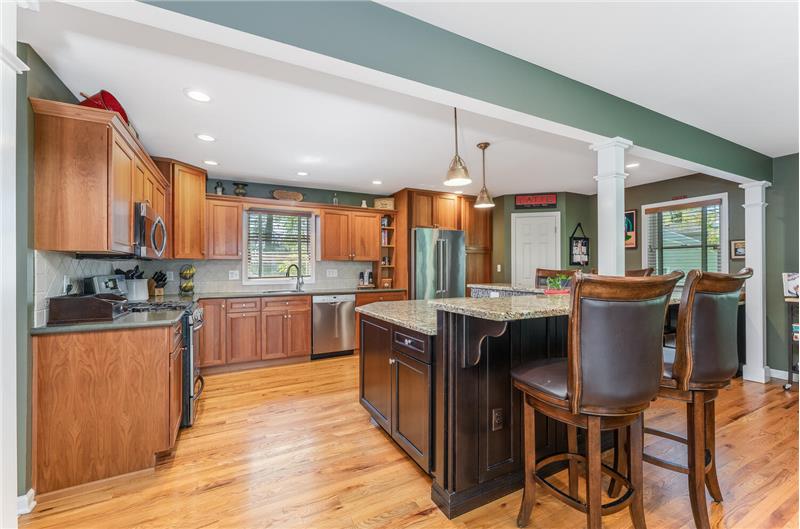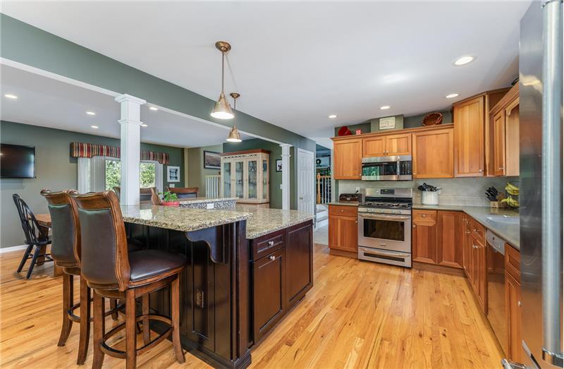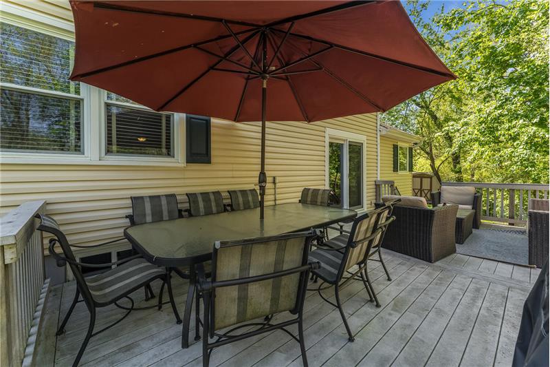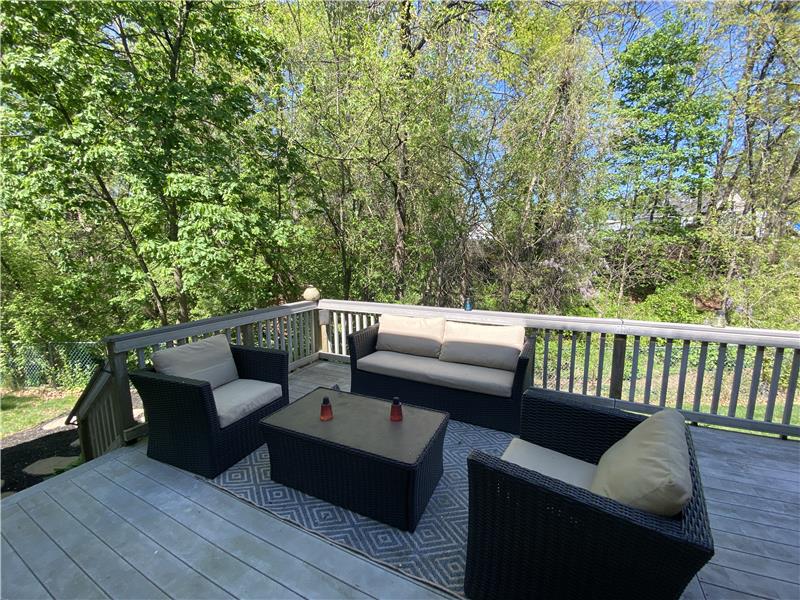 Welcome to a comfortable, well-maintained and renovated home. Spectacular kitchen features a granite island with seating, cherry cabinets, stainless steel appliances, and a walk-in pantry. Open flow to the dining room with cozy sitting area. Enjoy the serene outdoor space from the shady deck, patio, and fire-pit seating area. Large bedrooms w/custom closets. Bathrooms are updated, including a full bathroom in the finished basement, which also offers a rec room, exercise or home office area, laundry, and ample storage. Convenient location in a beautiful neighborhood!
