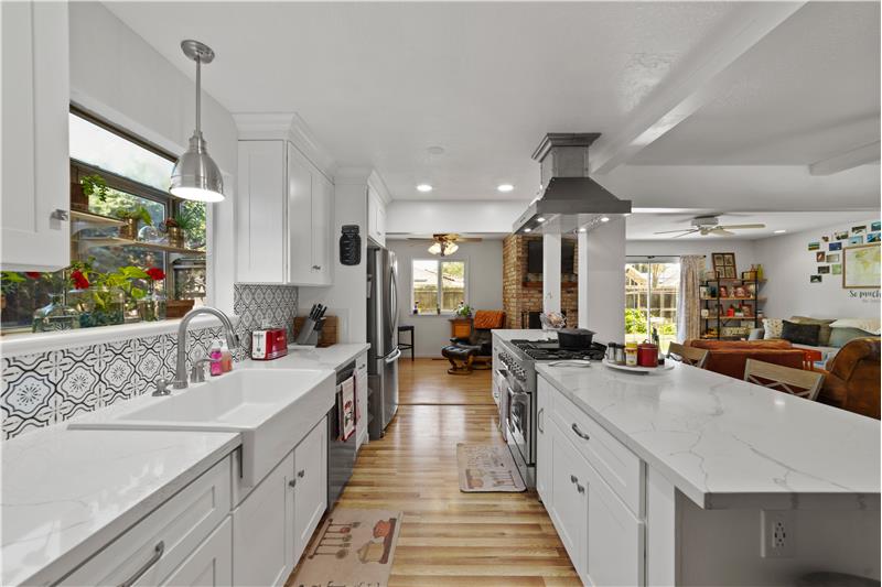 Lovely single story home in established West Woodland. This beautiful home features an open flow living space. The gourmet kitchen includes state of the art appliances, custom cabinetry, quartz counter tops, farmhouse sink, stainless hood, and pantry. Three generous sized bedrooms and two full bathrooms. PLUS, a fantastic sized backyard with patio and mature landscaping. Let's get you moved this summer!