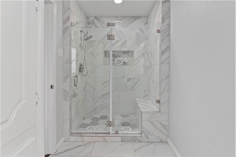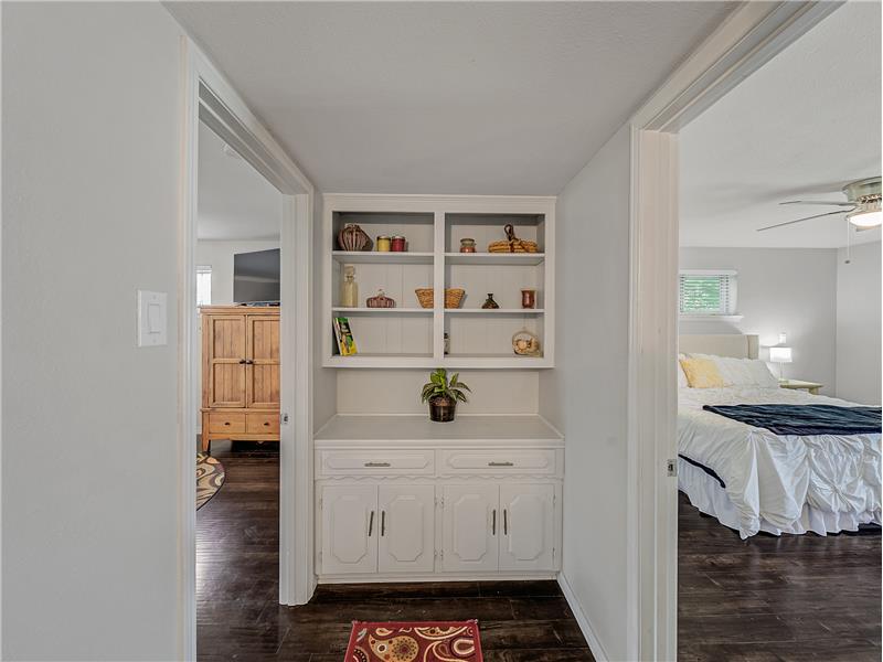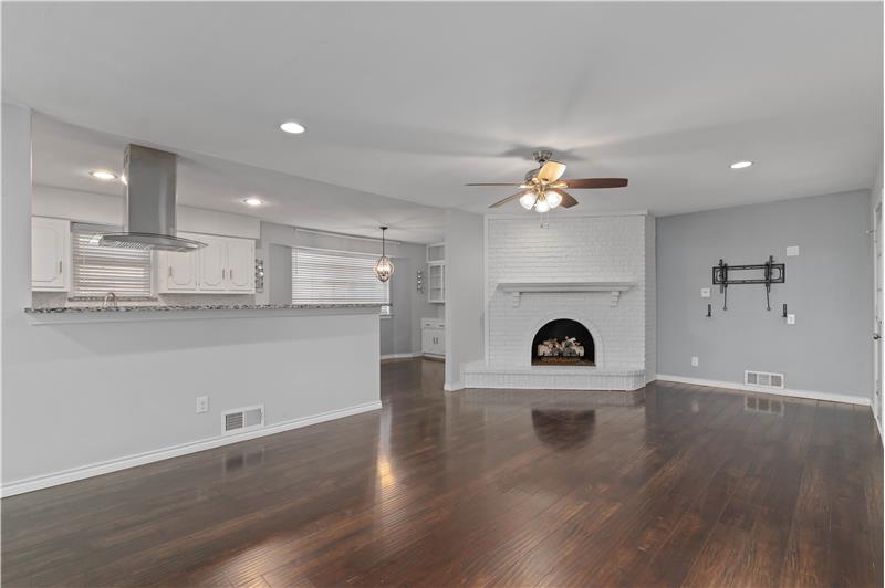 Must see! Stop renting! Located in sought-after Buckner Terrace, this one-story 3-bedroom, 2.1-bath home offers timeless updates and thoughtful touches throughout. Step inside to an airy, open floor plan filled with natural light. Wood flooring flows through the main areas, complemented by upgraded LED lighting and stylish modern fixtures. The living area features a freshly painted white brick fireplace with gas logs, a classic arched firebox, and a clean-lined mantle—ready to be enjoyed year-round.