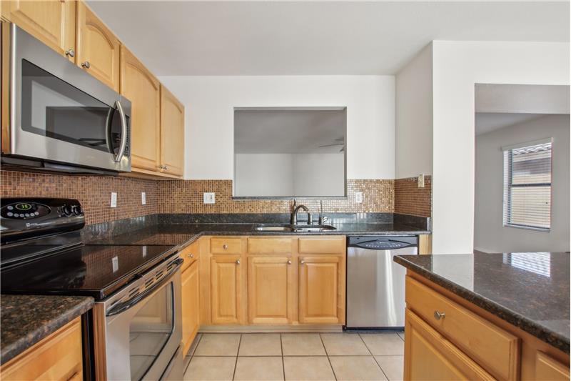 This stunning home features granite countertops, brand-new carpets, and is freshly painted in neutral earth tones for a warm and inviting feel. The spacious floor plan is designed with no wasted space, making it feel larger than the listed square footage! Highlights include: Tile flooring in the kitchen & wood laminate in the living area stainless steel appliances & maple cabinets in a well-equipped kitchen, walk-in pantry for extra storage, tile roof for durability and style, quiet interior lot for added privacy. A must-see to truly appreciate. Don't miss out on this fantastic opportunity!