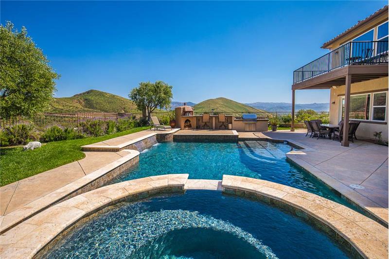 Rare offering for this Secluded Encantada Villa Toscana view home featuring 5 bedrooms plus a bonus room, 3.5 bathrooms, 4206 sq. ft. of living space, and sitting on a resort-like flag lot backing to open space with 180 degree inspiring views of the Simi Hills! Features include a gated Satillo tile courtyard entrance with a view, a private raised bed garden area, a rose garden, a radius old-world-style entry door, dramatic arched passages, lighted art niches, Artisan plank hand-scraped maple wood flooring, Hunter Douglas and custom window treatments, 8 ft. raised panel interior doors & more!