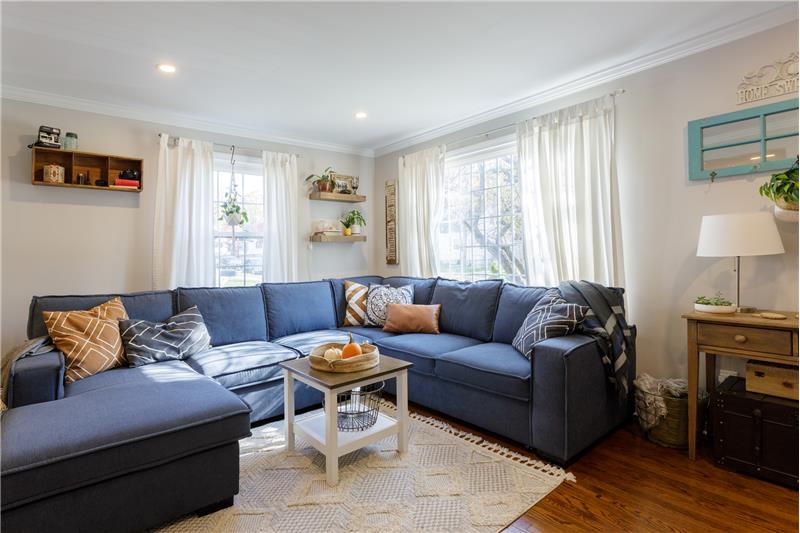 Immaculate and well-maintained home ready to move in. Completely turn-key. Very spacious formal living room, formal dining room, den with wood-burning fireplace, kitchen with tons of counter and cabinet space, and a full bath make up the first floor. Wall to wall hardwood floors. No carpet! Light and bright everywhere. Upper level features oversized master bedroom, full bath, and 2nd bedroom. Spacious finished lower-level family room with lots of storage. Awesome deep backyard. Conveniently located close to highways, shopping, and schools. Off street parking. Shows very well.