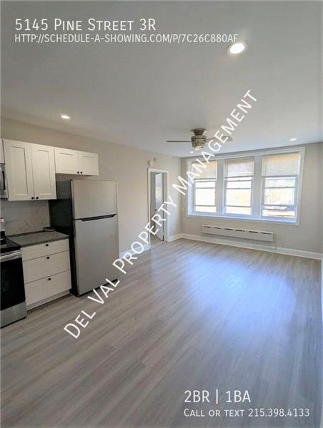• We've Improved the Rent! Spacious Updated 3rd FL Apartment for Rent – 5145 Pine Street, 3R, Philadelphia – Available Now! • $1,330 / month + utilities (gas, electric, monthly $30 water fee) • 2 Bedrooms • 1 Bathroom • Modern eat-in kitchen boasts Stainless-Steel Appliances including Refrigerator, electric Stove, Dishwasher, Built-in Microwave) and More! • Bedrooms feature energy-efficient Ceiling Fans + large closets • Private storage unit • Coin-operated Laundry in basement • For More Information or a Showing, please see Description Page!