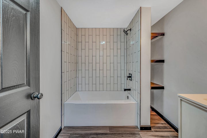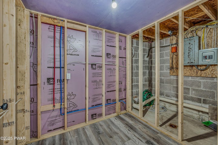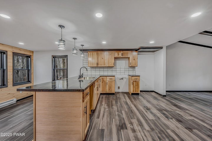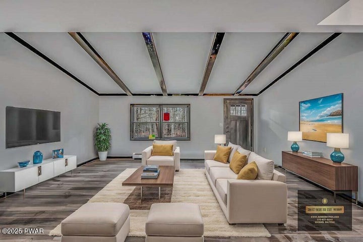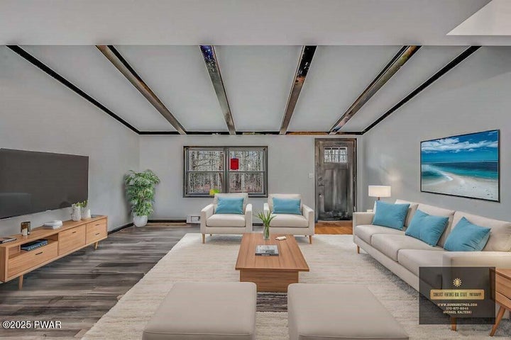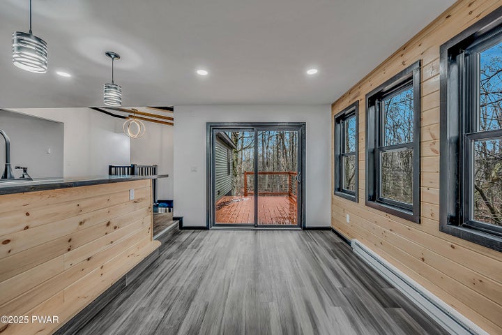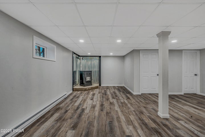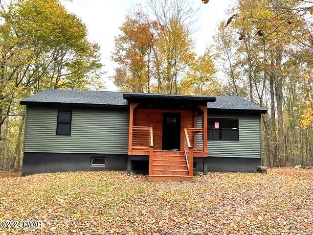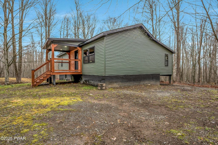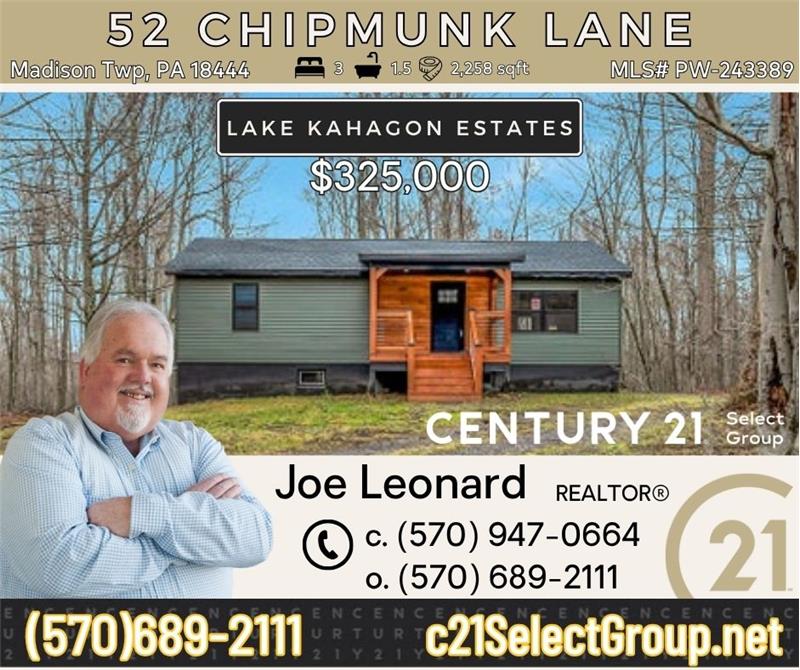 A rare opportunity to own a home in Lake Kahagon Estates in the North Pocono School District! Nestled in the woods, enjoy the 25 acre, non-motor boating lake fishing or hike along the trails in this large 300 acre preserve! This 3 bedroom, open-floor plan home has been renovated from the ground up, with all new insulation, Sheetrock, windows and floors. The plumbing is all new pex-pipes along with new fixtures. Downstairs in the large, finished family room, find a cozy pellet stove and space for everyone! Outside is updated with new siding and roof and a large rear deck and more!