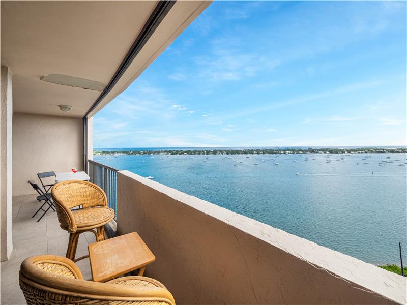 Enjoy the panoramic vistas from this 18th floor condo overlooking Palm Beach Island, Marina the Atlantic Ocean, Intracoastal Waterway, pool, tennis court and fishing pier. The large balcony is a great place to enjoy the sunrise and ocean breeze while enjoying your morning espresso. Tastefully decorated with dark cabinetry, granite counters, stainless steel appliances, crown molding, and it comes fully furnished. The building features a pool, club room, exercise suite, billiard table, shuffleboard, tennis court, fishing pier, storage lockers and kitchen.