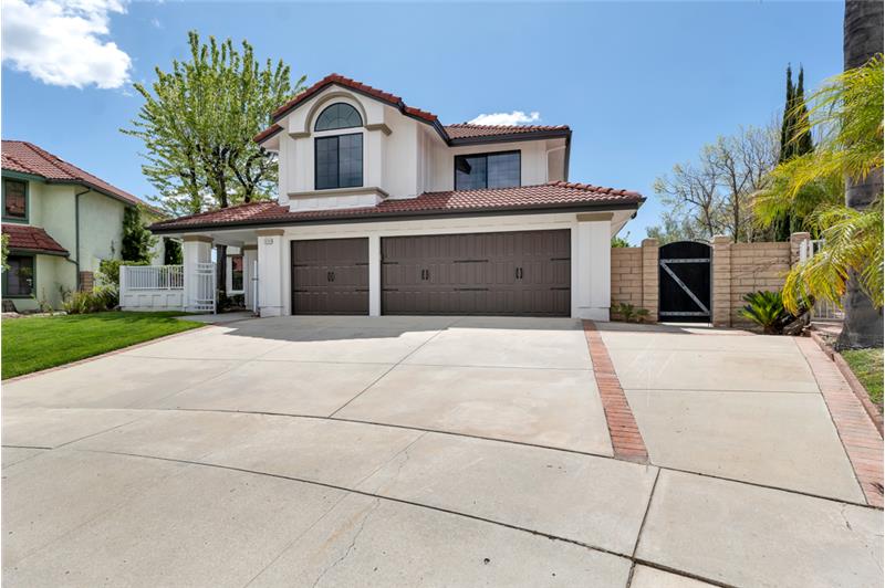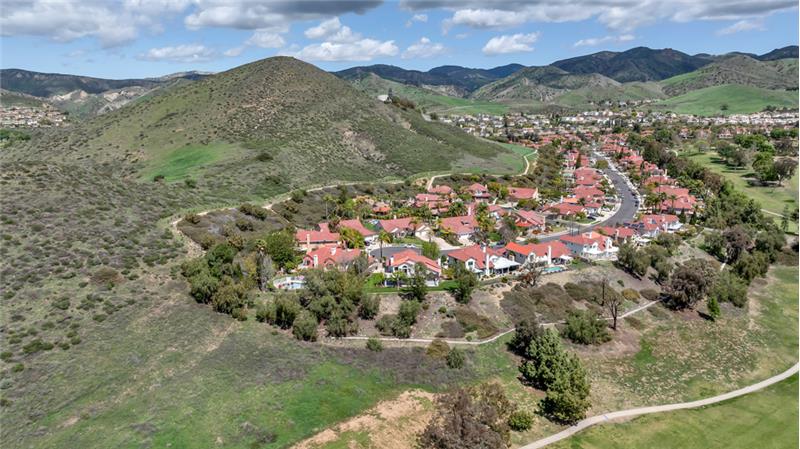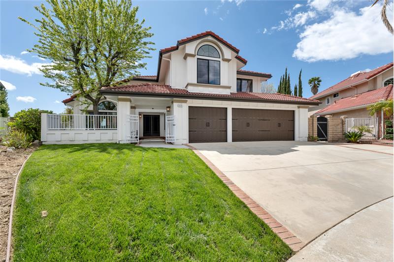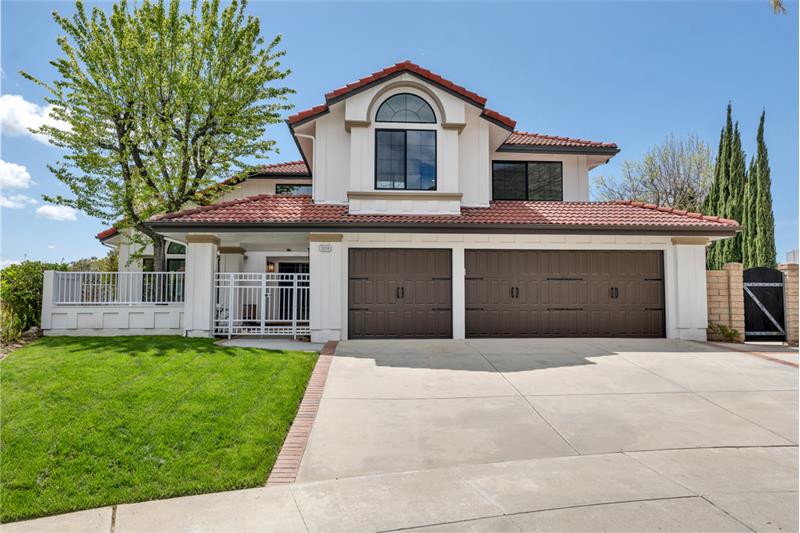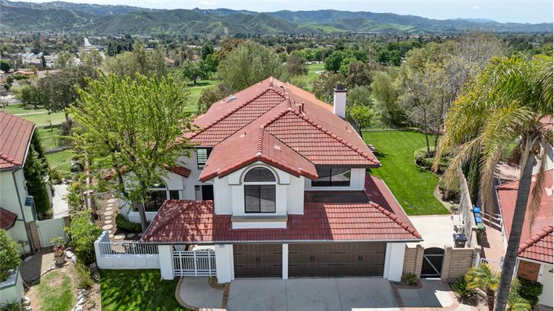 Nestled at the end of a cul-de-sac in the highly desirable Indian Hills Estates in the northeast Simi Valley foothills, this two-story home offers panoramic valley and golf course views. Set on a generous 9,146 sq. ft. parcel made up of three combined lots and overlooking the Simi Hills Golf Course, this well-maintained home features 4 bedrooms, 2.5 bathrooms, 2951 sq. ft. of living space and impressive curb appeal with an extra-wide driveway and a 3-car garage. The front courtyard welcomes you with a brick-lined walkway, iron gate, and double door entry with screen doors to enjoy the breeze.