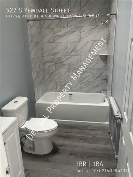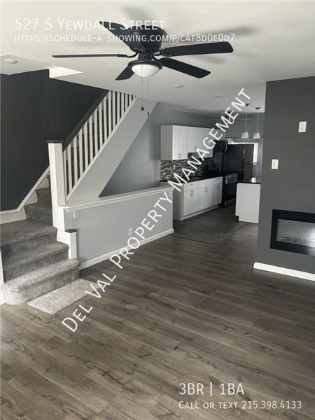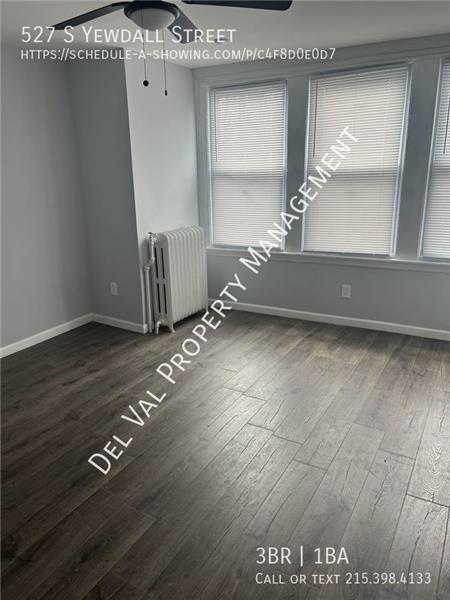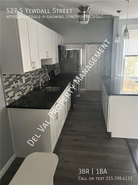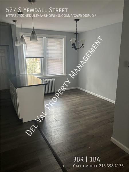 About this Property:Spacious 3-Bedroom, 1 Bath Home for rent in West Philadelphia! – 527 South Yewdall Street$1,615/month plus utilities3 Bedroom1 Bathroom1425 sq. ft.Street parkingEnter into a gorgeously renovated first floor with an open floor plan as well as a fireplace built into the wallContinue through the living room to the kitchen with plenty of space for a seating area as well as an eat-in island and brand-new appliancesOff the kitchen you have access to a rear yard as well as a semi-finished basementFollow up the carpeted stairs to find 3 bedrooms and a full bathroomWalk to publ ...