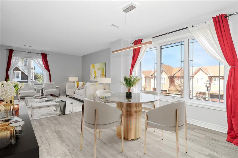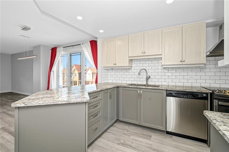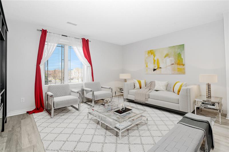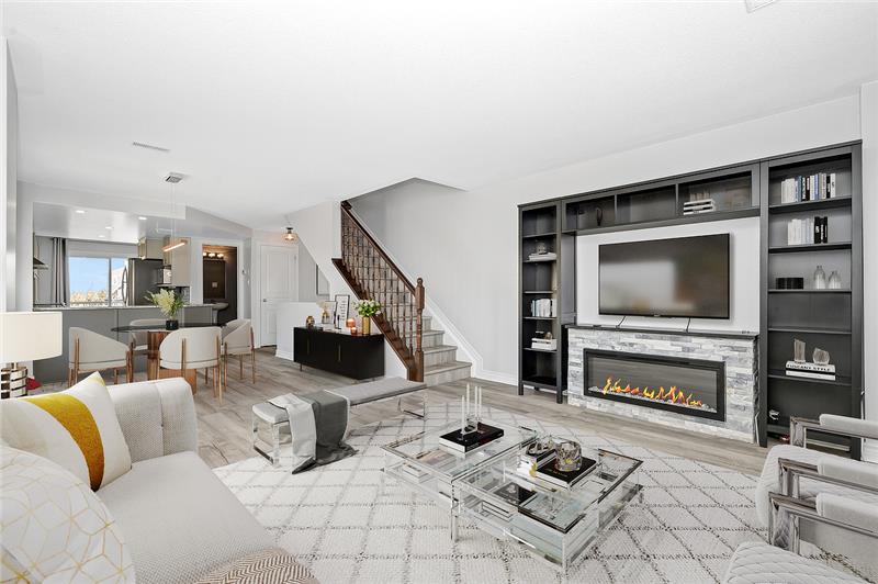 Bright 2-bed, 2.5-bath terrace home with 2 parking spots, modern kitchen, dual ensuites, 2 balconies, and bonus flex space—steps from transit, shops, and dining. Some photos virtually staged.
