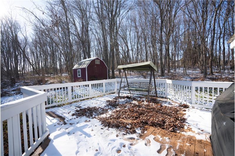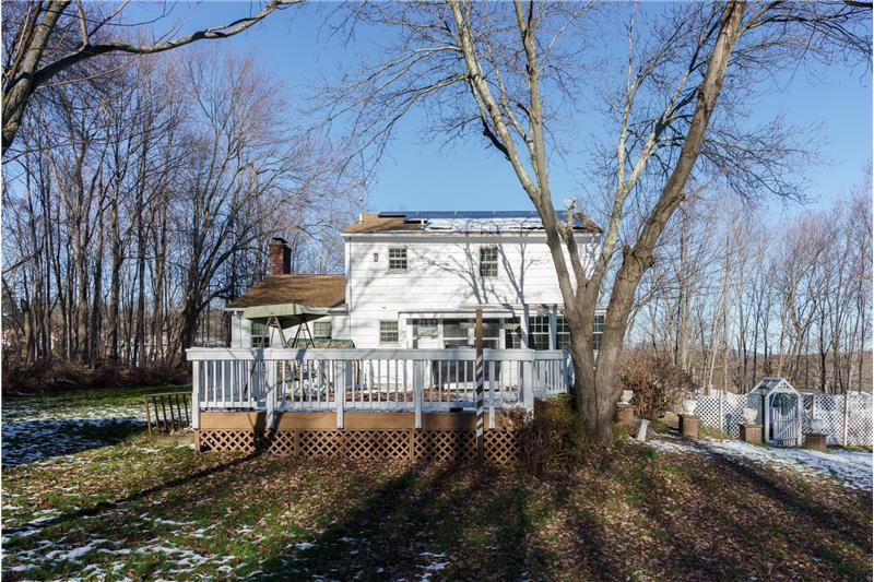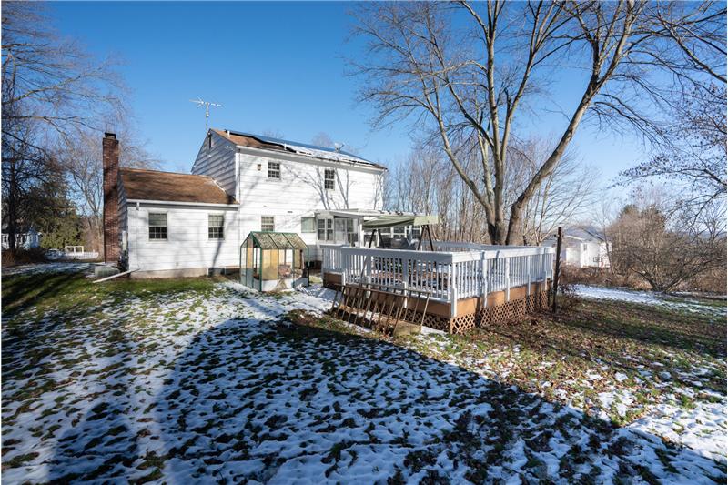 Oversized colonial on a lightly wooded 1 acre lot abuts West Rock State Park. Upon entering, take note of the beautiful porcelain tile floor. Step down into the living room to find a large bay window, which leads into the formal dining room, and then into the eat-in kitchen, which features a door to access the 4-season sunporch with attached deck. There is a first-floor den with wood-burning fireplace and ceiling fan. Wall to wall hardwood floors underneath all carpets. A large bedroom and full bath make up the rest of the first floor. Upstairs on the 2nd floor are 3 additional bedrooms.