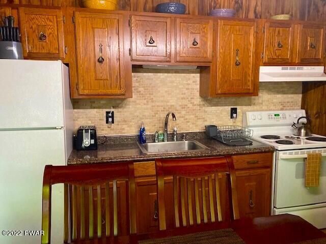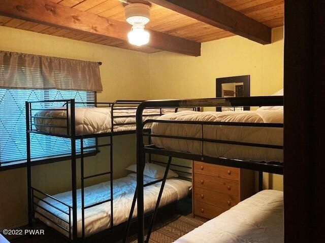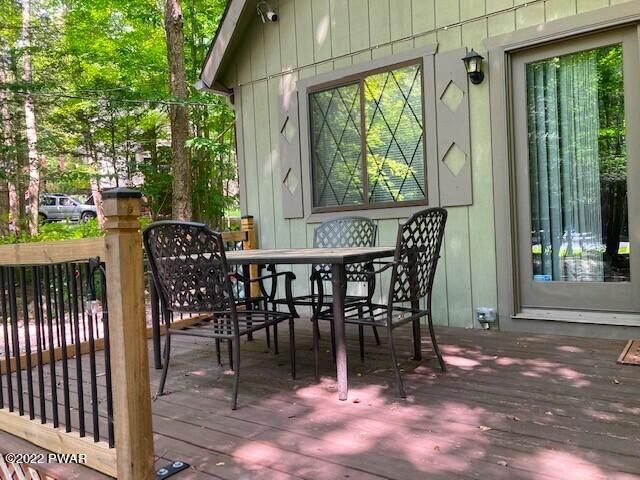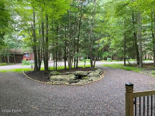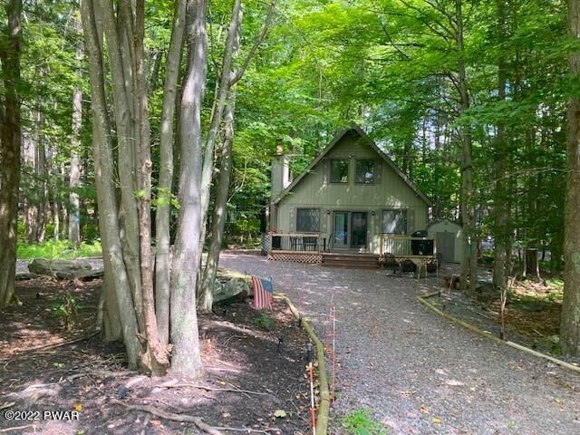 This Northern Pocono Chalet set back off the road on an oversized 0.57 acre lot gives you the privacy you're looking for. A circular driveway offers plenty of parking for guests and family. The rustic interior features 3 bedrooms and 1 bath, a living room fireplace, newer flooring throughout and a newer kitchen back splash. The home is easy to heat, maintain and move-in ready. Furniture included! Located within the gates of The Hideout, a four-season gated recreation community with a power boating lake, golf course, clubhouse, recreation building, main lodge, a ski hill, golf course and more!
