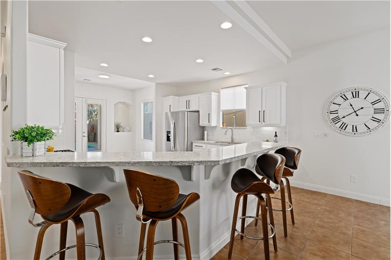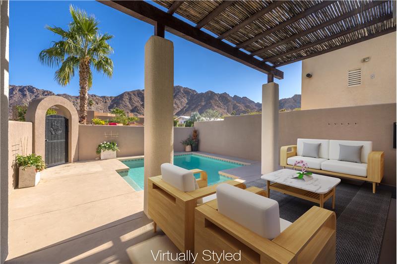 Move-in ready with big-ticket updates already done! This beautifully furnished home in La Quinta Cove features a sparkling pool with brand new Pebble Tec finish and updated equipment. Enjoy peace of mind with a brand new 5-ton AC unit, new roof, new garage door, and even AC in the garage! The home comes fully furnished just bring your toothbrush! Relax in the backyard with stunning mountain views, or take a short stroll to Bear Creek Trail, Old Town La Quinta's shops and restaurants, or the nearby Fritz Burns pickleball courts. No HOA. Some photos virtually staged.