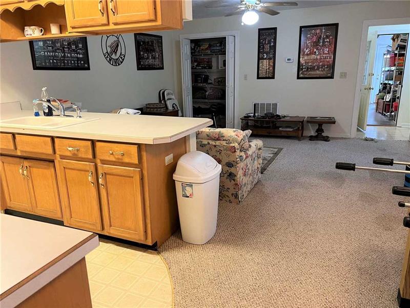 Beautiful Southern front porch home in highly desirable Ox Bottom Manor with a full in law suite. This 4 bedroom 3 bath floorplan features an open concept living room overlooking the large deck and lovely back yard on nearly an acre. This is a split bedroom plan with an office, master bedroom and 2 guest bedrooms on the main floor. The full in law suite with family room, guest bedroom and kitchen is located on the lower level with French doors to the covered patio. Additionally, you'll find a 3 car garage with tons of storage. Roof was replaced in 2015.