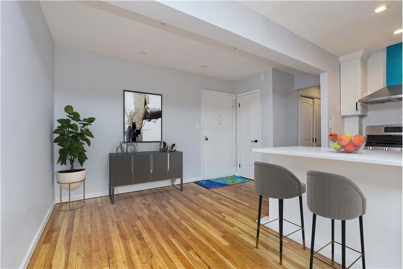 Totally renovated 2 bedroom condo! Exquisitely designed with hard wood floors throughout, gorgeous brand new kitchen with ss appliances and quartz countertops, magazine worthy decor in new bathroom, generous size living room and primary bedroom, new AC units, and plenty of closet space. Near Silver lake park, conveniently located near to buses and ferry. This impeccably maintained Manhattan style building has such amenities as an evening doorman, pool, bbq area, on site laundry, building super, all include in HOA fee along with water, gas, and heat! Please call Red Door Realty at 718-987-3667.